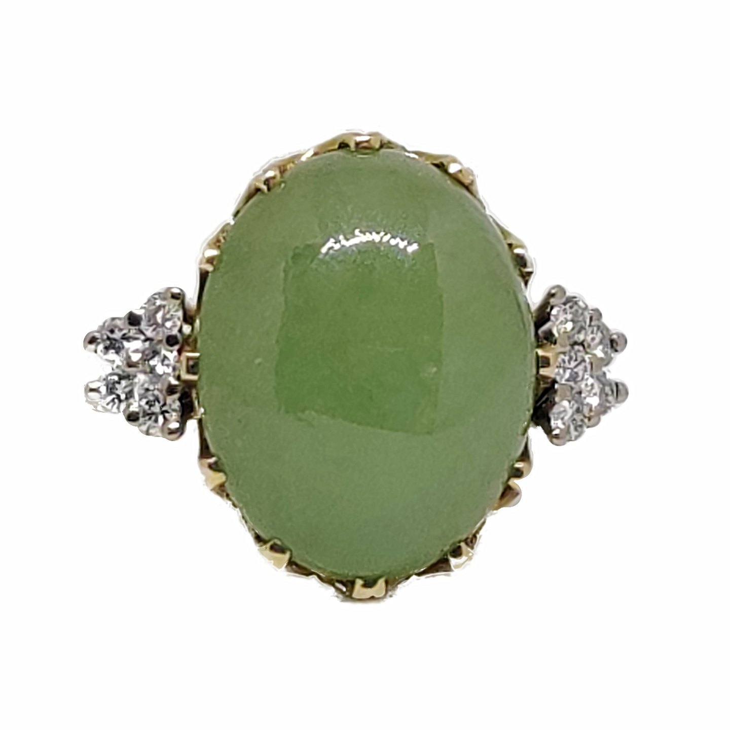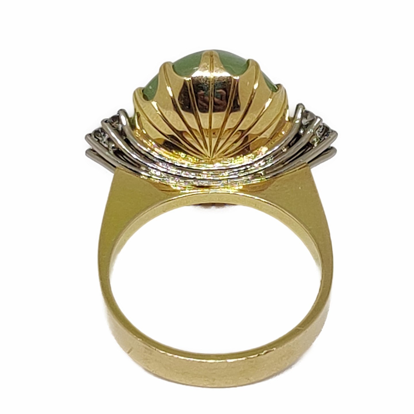 Hugo Grün; Ring i 14 kt. guld og hvidguld prydet med jade og diamanter, i alt ca. 0,30 ct. Wesselton (H) - VS. Ring str. 55.
