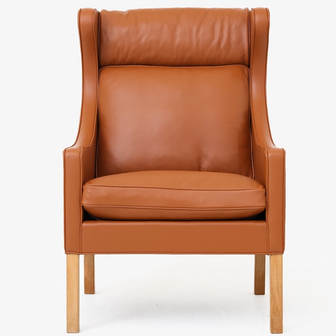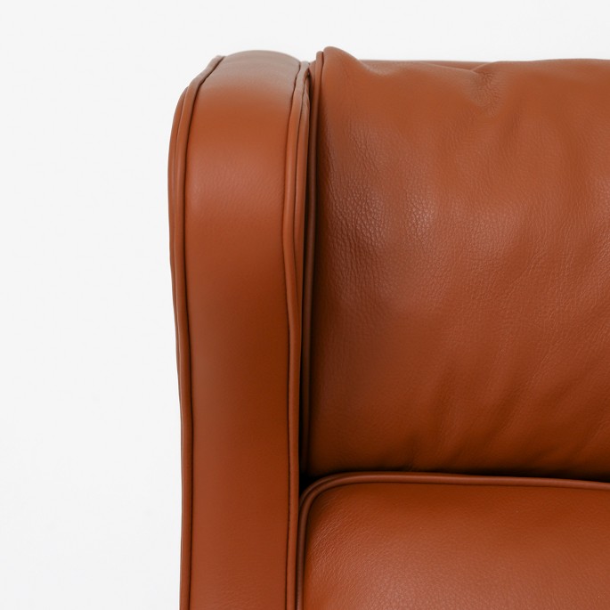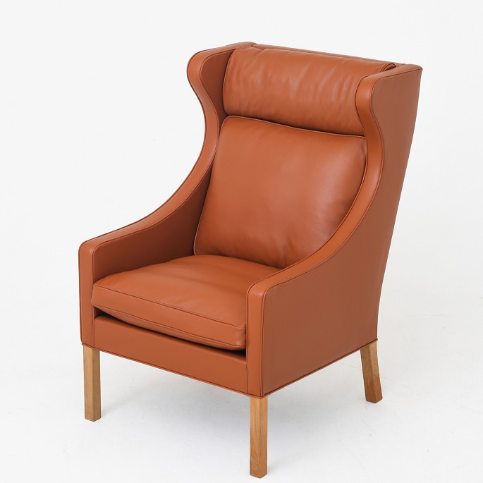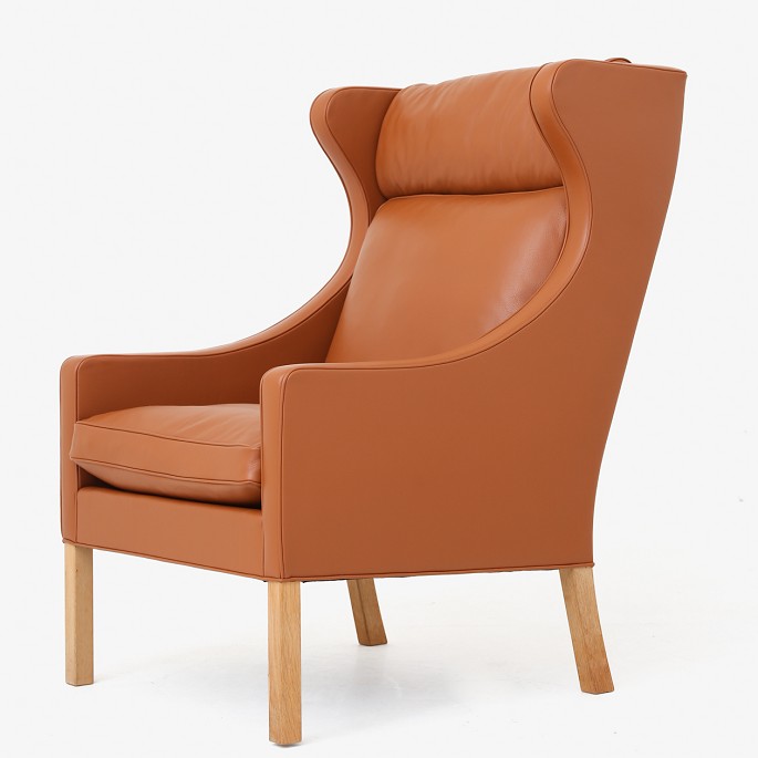 BM 2204 - Nybetrukket 'Øreklapstol' i 'Prestige' cognac semi-anilin-læder. KLASSIK tilbyder stolen i tekstil eller læder efter eget valg. Kontakt os venligst for mere information.