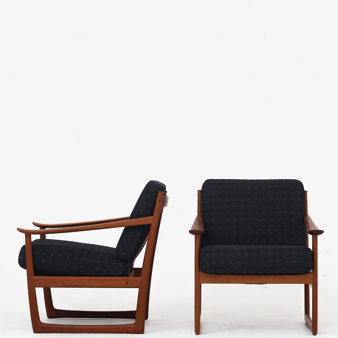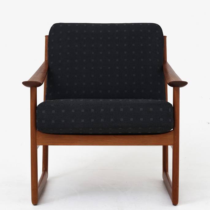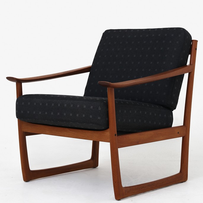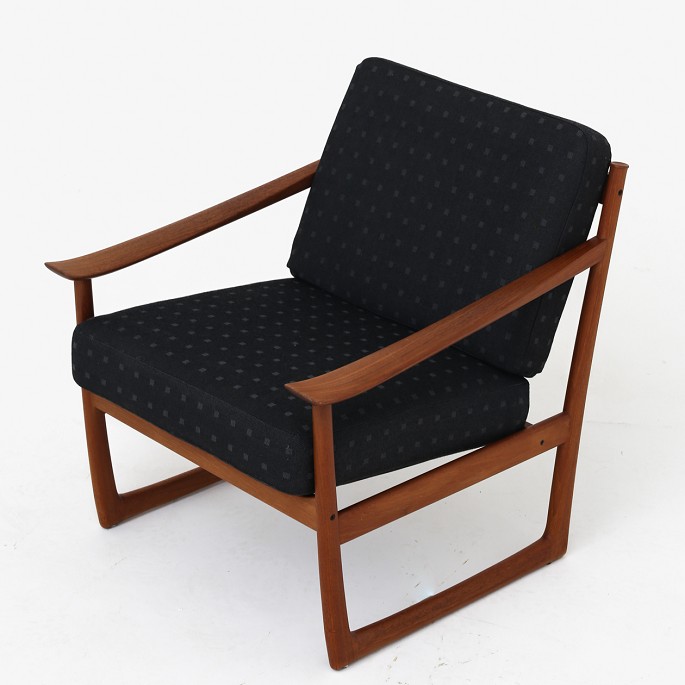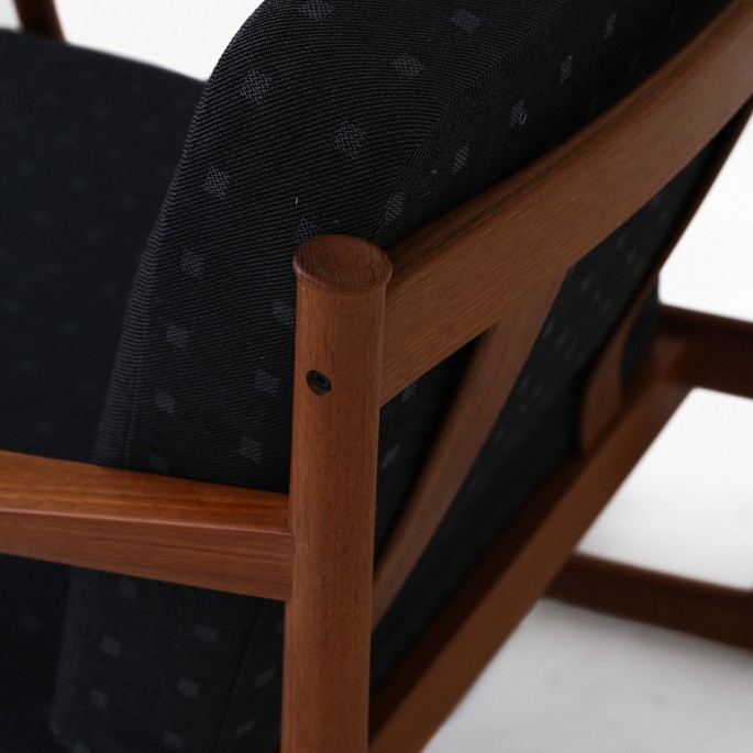 FD 130 - Lænestol i teak og mørkeblåt uld.