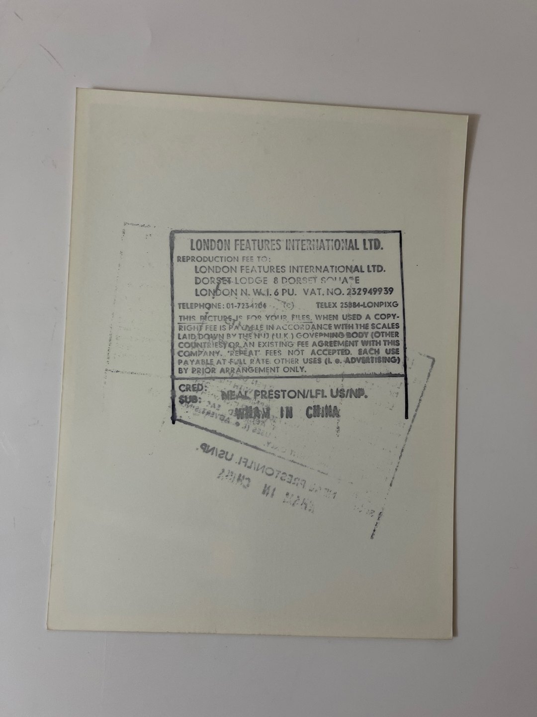 Neal Preston er kendt som fotograf for nogle af verdens største rockbands, og hans billeder bliver genoptrykt til af adskillige gallerier. Her er der dog ikke tale om et reprint, men om et originalt pressefoto fra begivenheden med stempel fra London Features International Ltd. Billedet er ikke dateret.