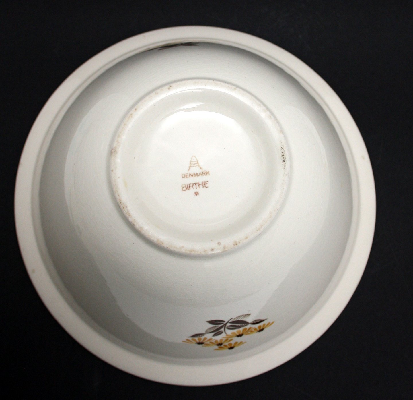 Aluminia, Birthe, Suppeterrin. Højde med låg 15 cm. Diameter 26 cm. Chipafslag under knop på låg. God stand med overfladekrakeleringer. Pris: 300 kr. stk. Lager: 1