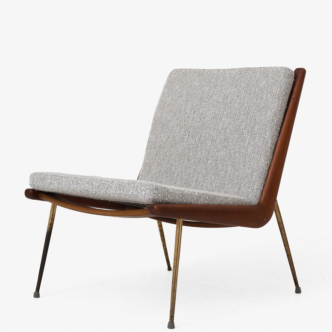 FD 134 - 'Boomerang' lænestol i teak, messing ben og nybetrukket hynder i Malou Raphia.