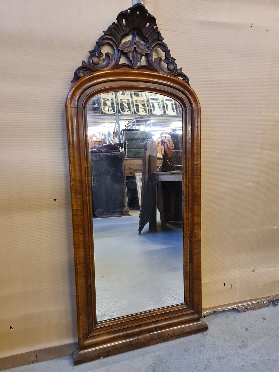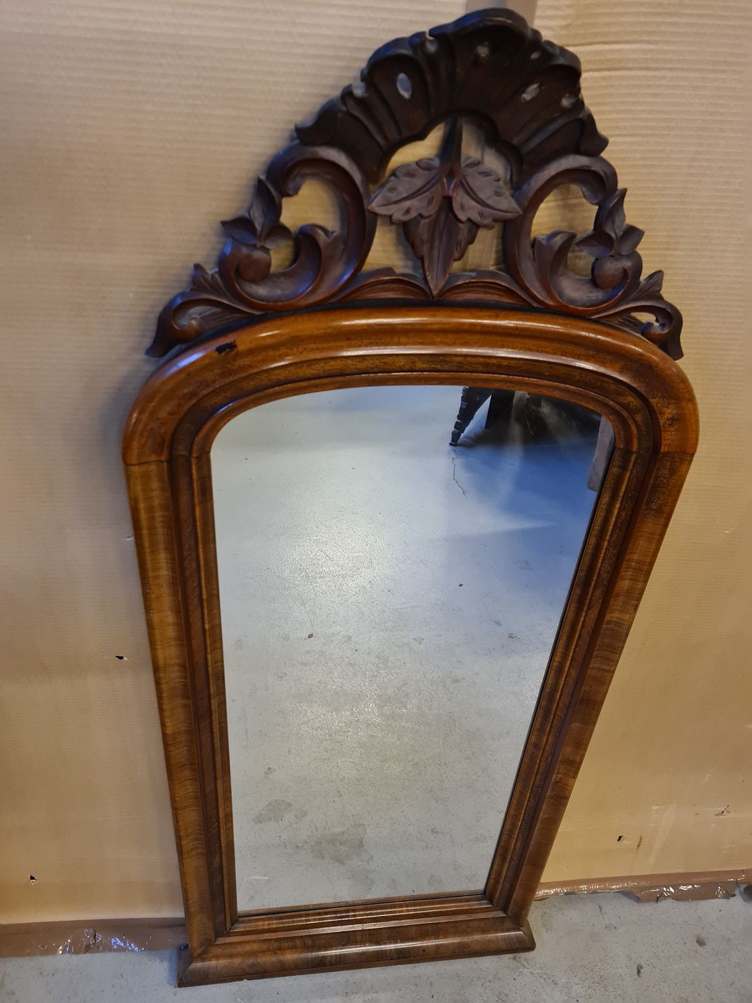 Spejl i fineret mahogni, fra 1900erne.