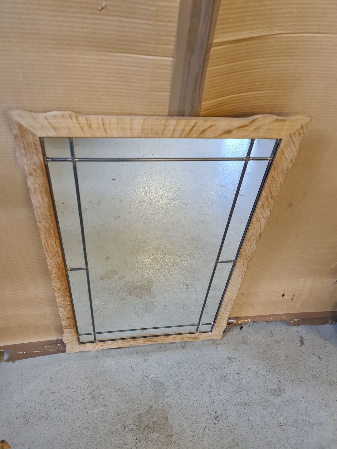 Spejl i egetræ med blyindfatning, fra 1980erne.