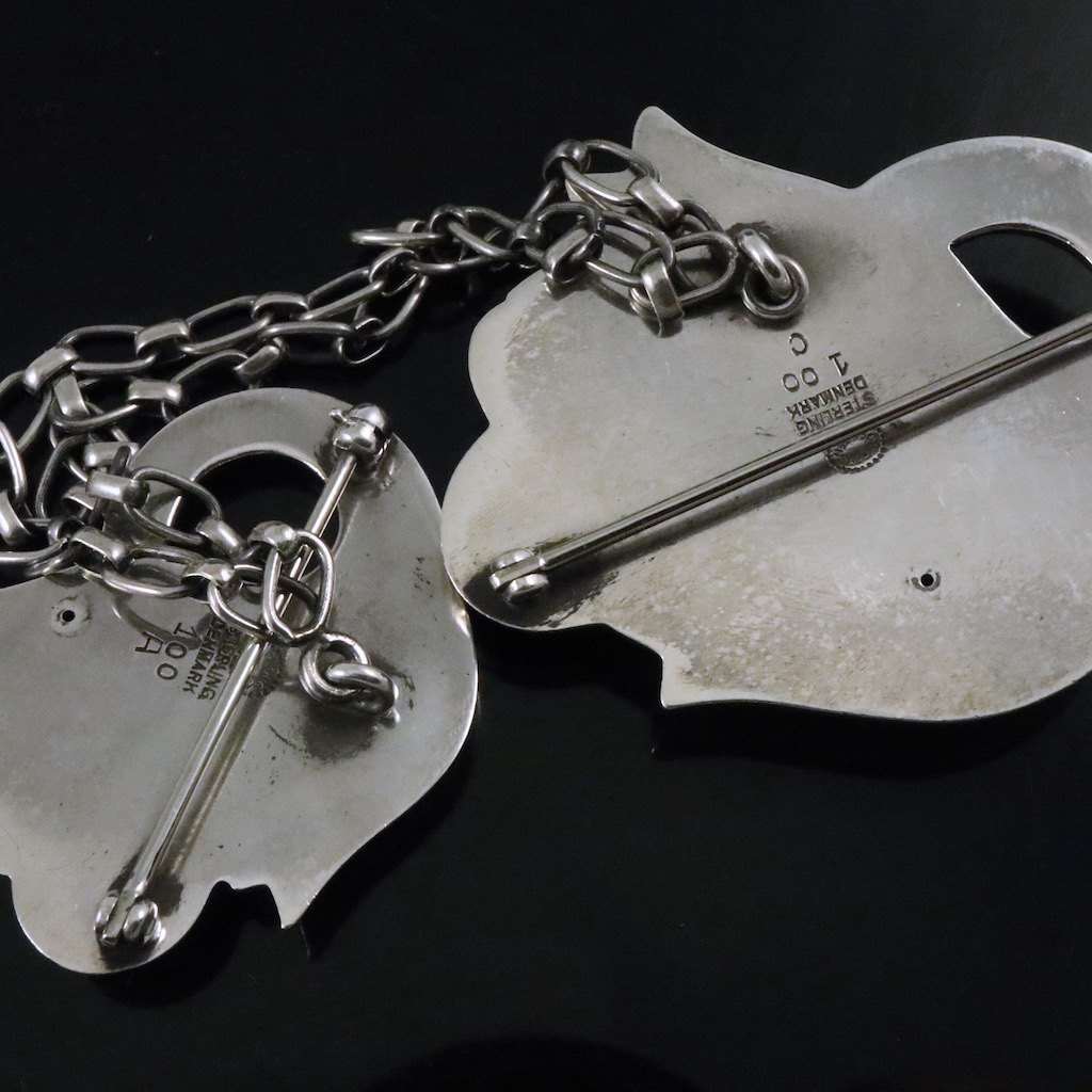 Georg Jensen. Sterling Silver Double Brooch / Pin Set #100CA.
