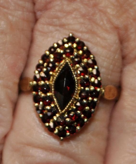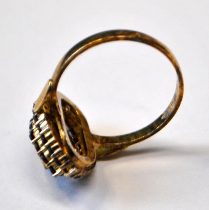 Forgyldt sølvring med granater, 20. årh.