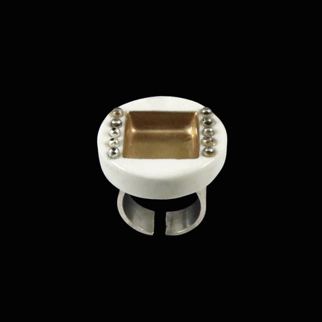 Royal Copenhagen / A. Michelsen. Ring i sterlingsølv og porcelæn.