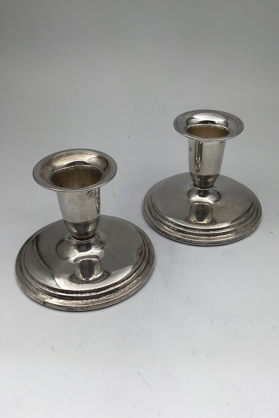 DGS Krone Sølv Lysestager (Par) Måler H 6 cm (2.36 inch) Diam 7.5 cm (2.95 inch) Samlet Vægt 167 gr (5.89 oz) (Udfyldt)