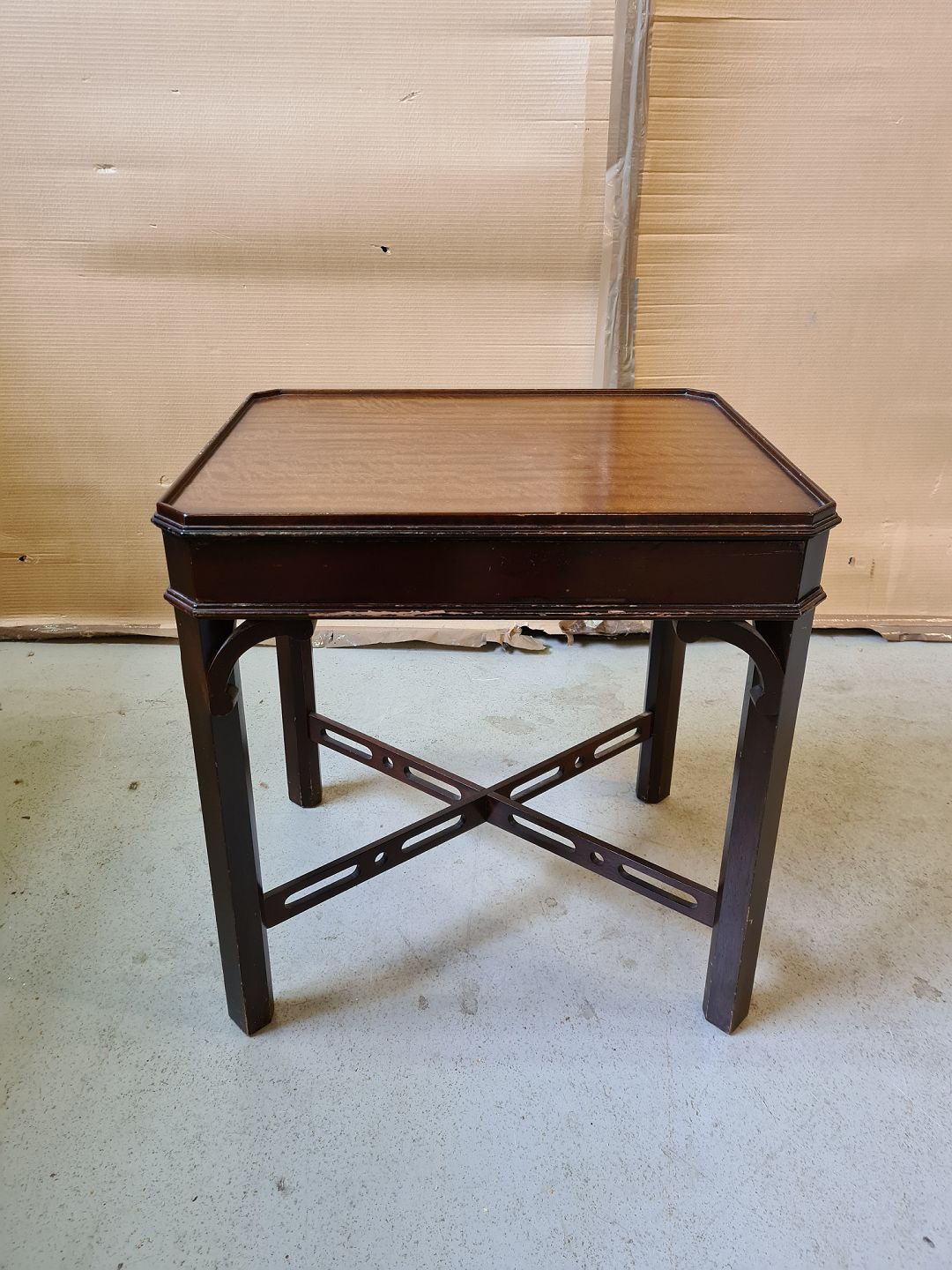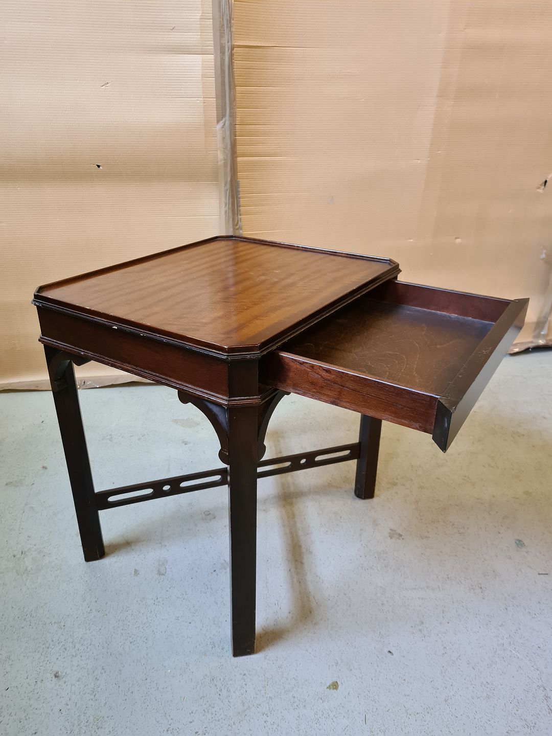 Lampebord i fineret mahogni fra 1980erne.
