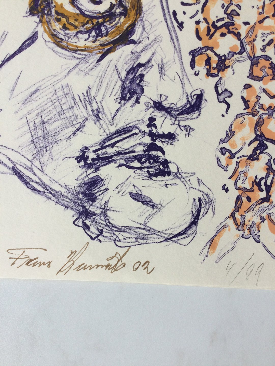 Farvelitografi af Frans Kannik 2002 - Komposition med ansigt.
