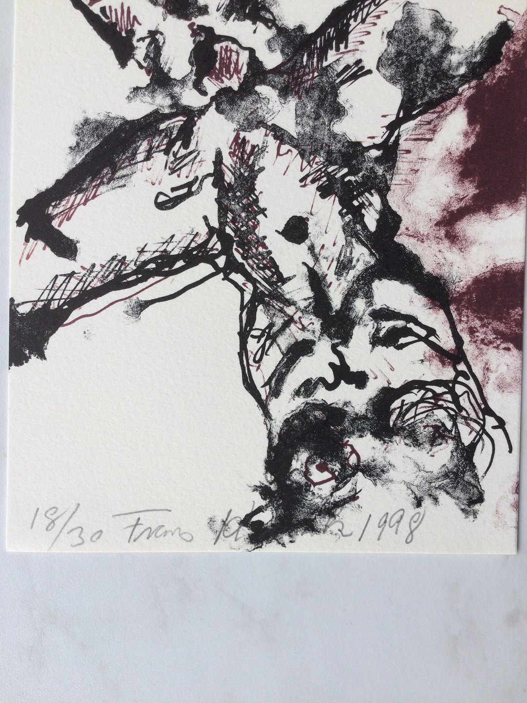 Farvelitografi af Frans Kannik 1998 - Komposition "Den korsfæstede"