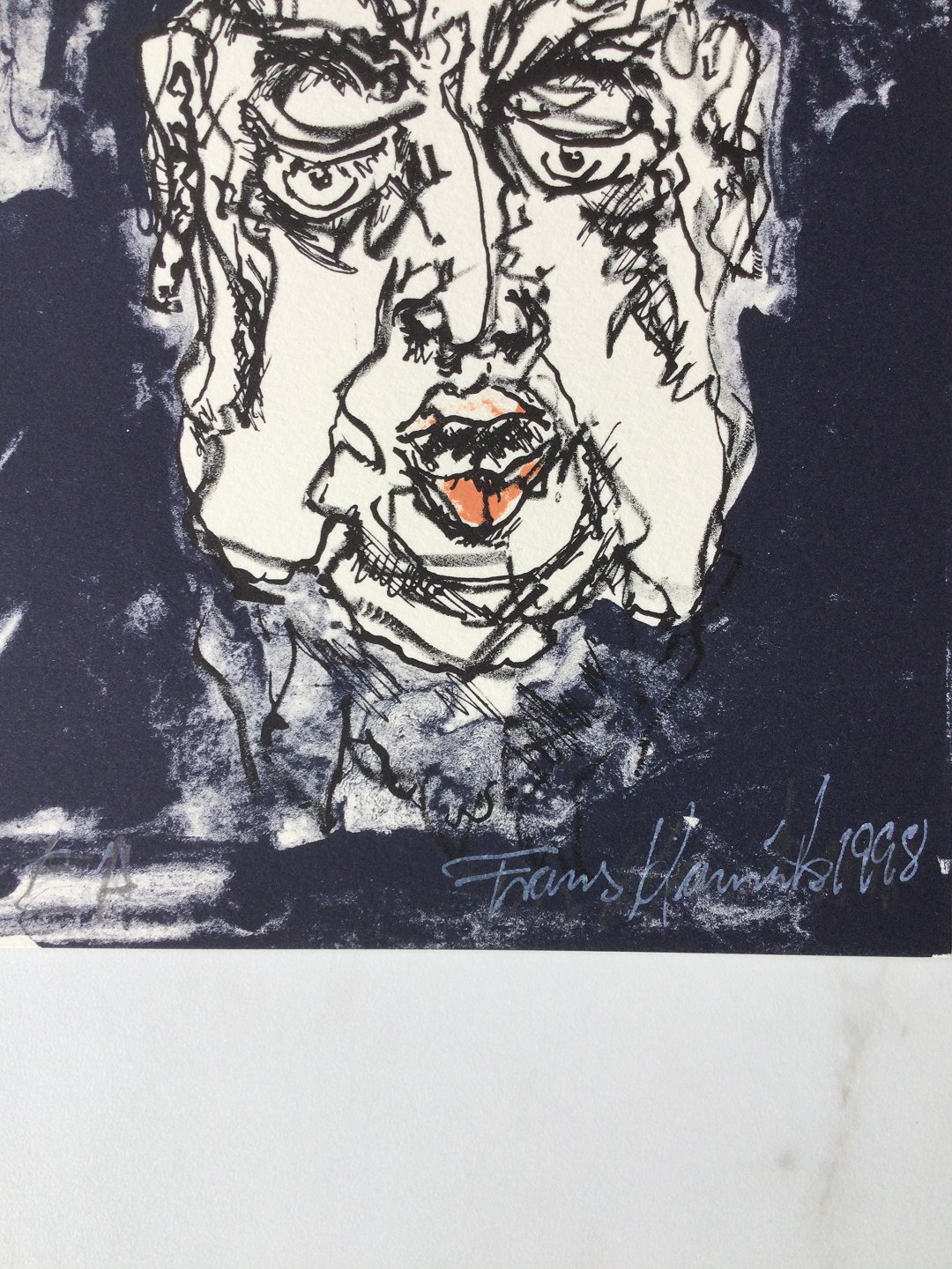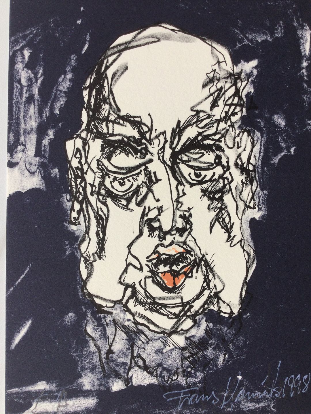 Farvelitografi af Frans Kannik 1998 - Portræt - antageligt et selvportræt.