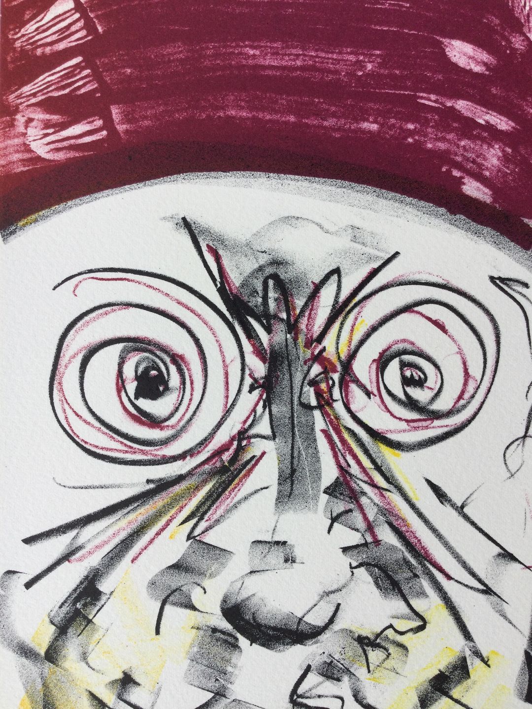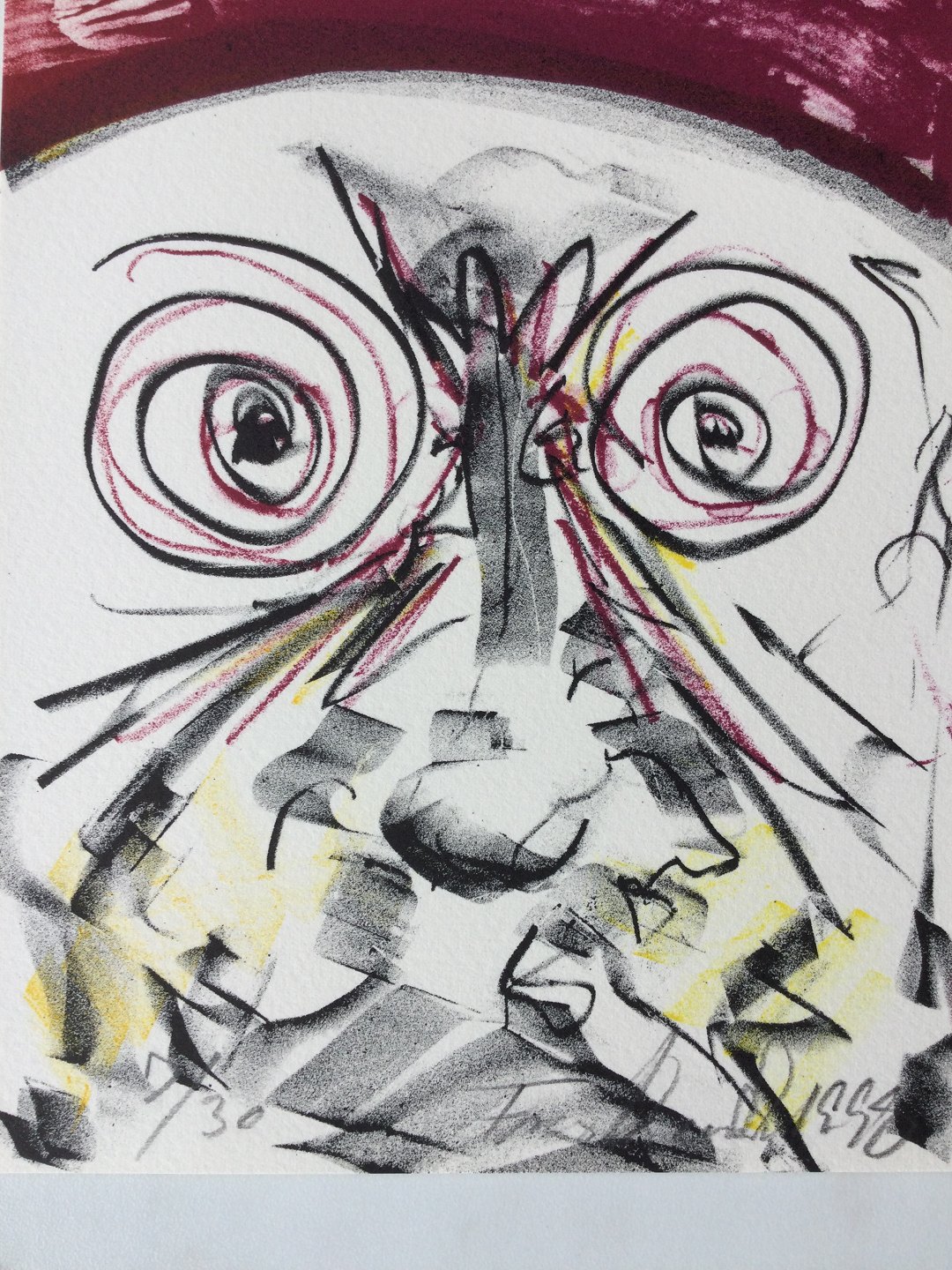 Farvelitografi af Frans Kannik 1998 - komposition med ansigt.