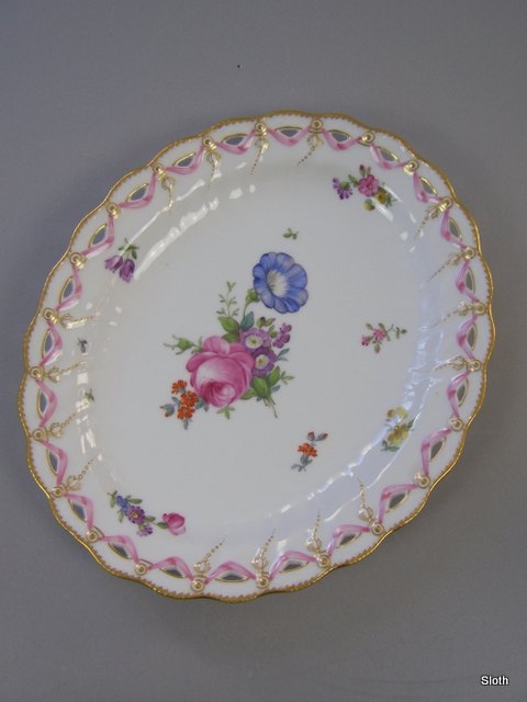 R.C. 4/1579 og 4/1580 Saksisk Blomst Frugtskål med Underfad 1. sort. H: 10 cm. L: 27 cm.