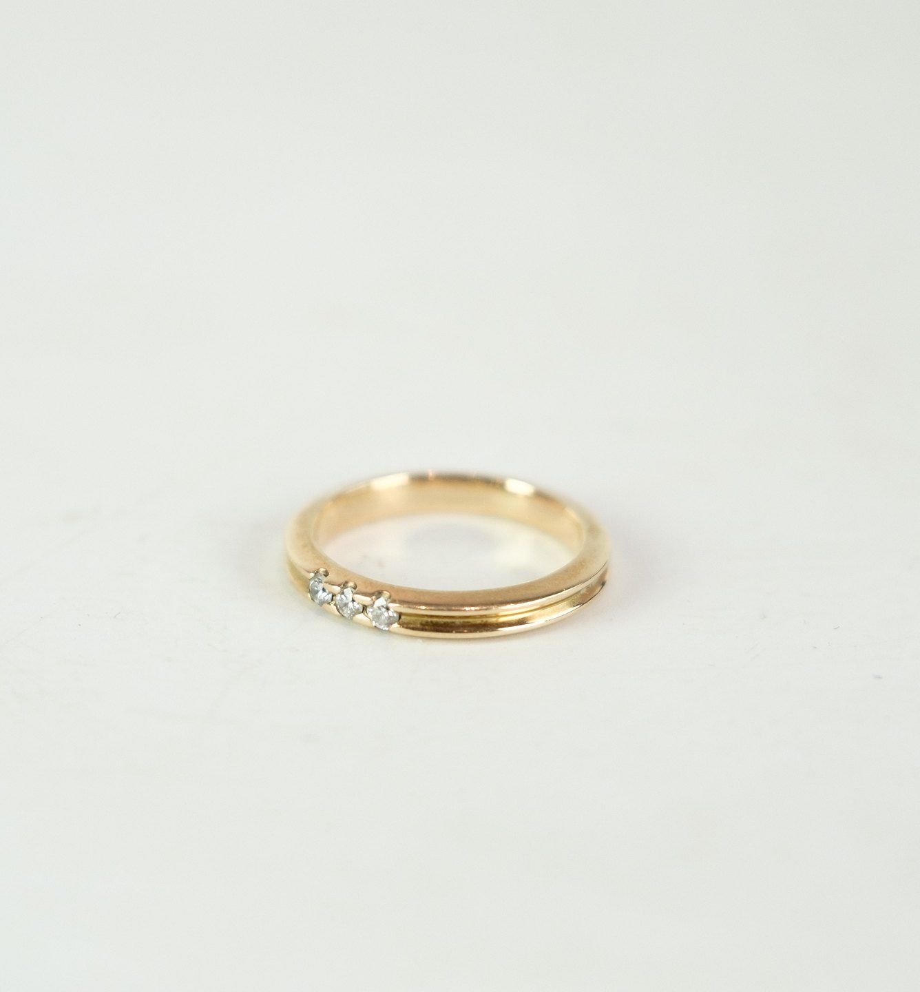 Alliance ring i 14 karat guld, stemplet BRJ 585 af Bremmer Jensen med 3 stk 0,05 karat diamanter.