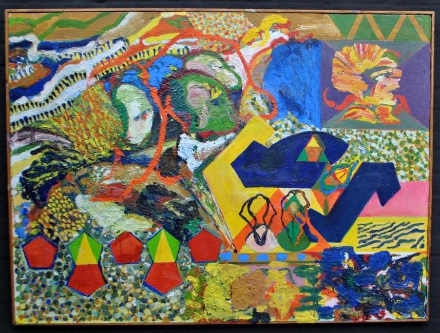 Rud, Jørgen (1960- ) Danmark: Komposition. Olie på lærred/plade. Verso signeret 1999. 99 x 133 cm.