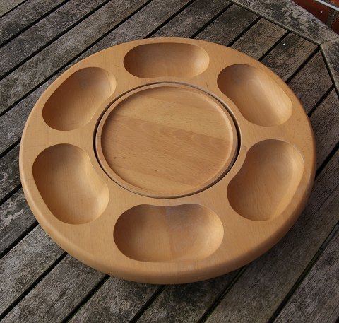 Fonduesæt i rustfrit stål på drejelig træbakke fra Digsmed, samt med 2 x 6 gafler. Se ekstra fotos.