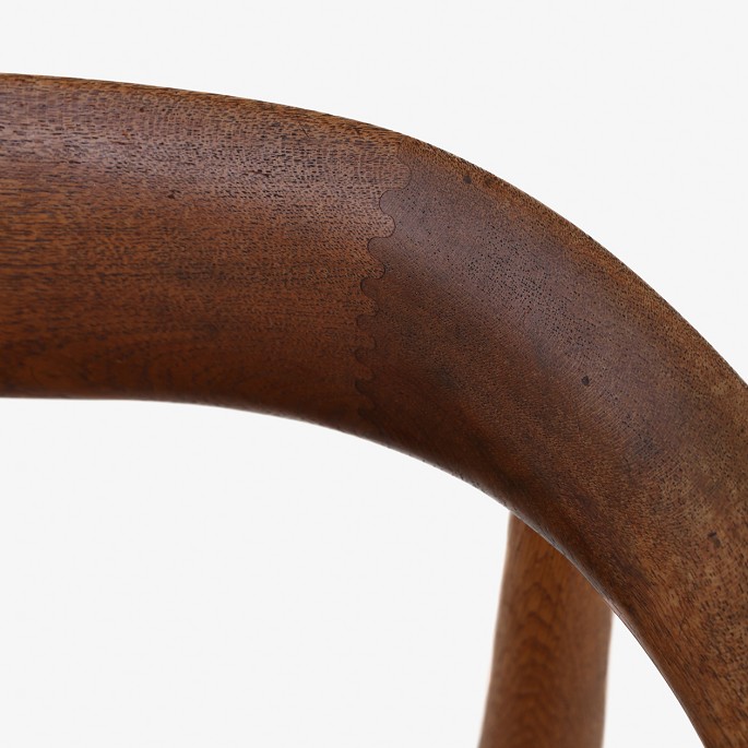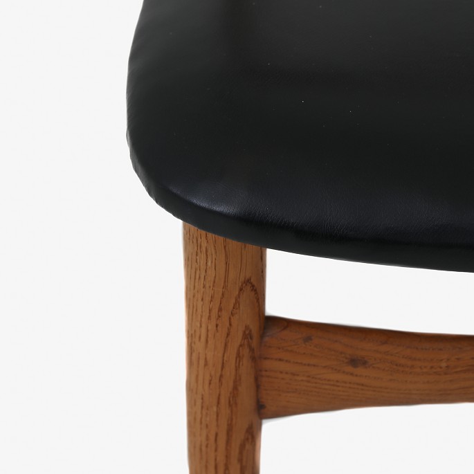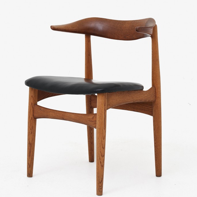 Armstol i teak og eg med sæde af sort læder.