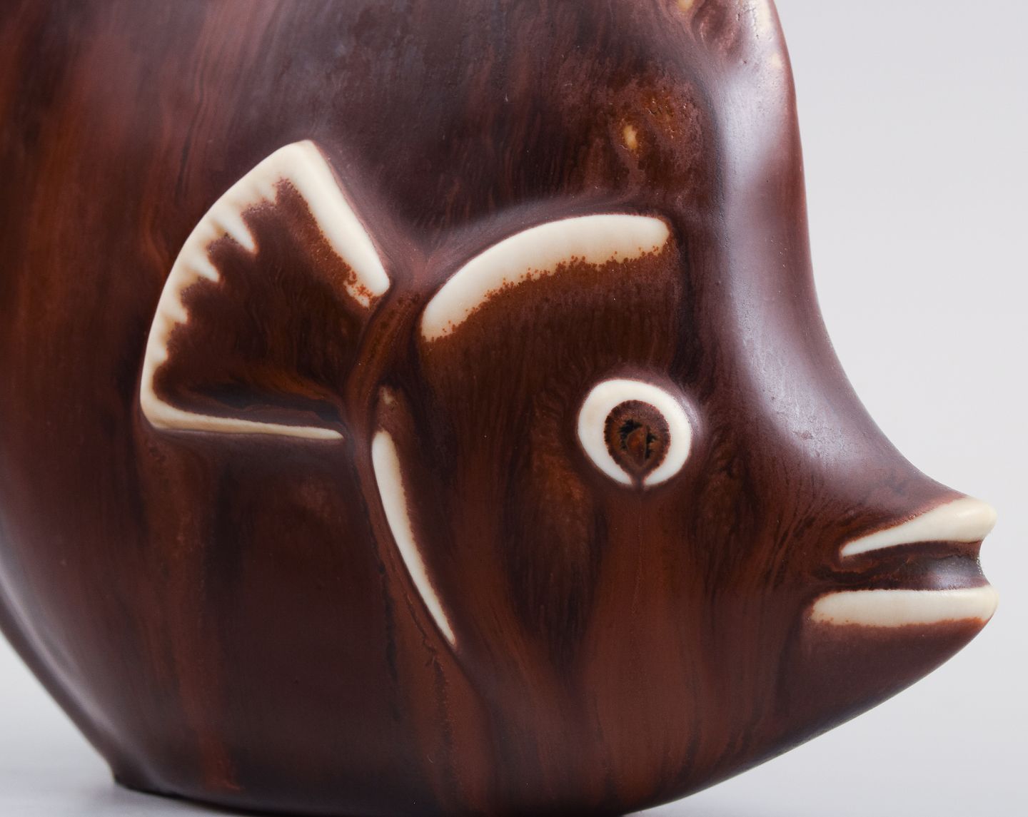 Gunnar Nylund (1904-1997) for Rörstrand. Fisk i glaseret keramik. Smuk glasur i brune nuancer. Midt 1900-tallet.