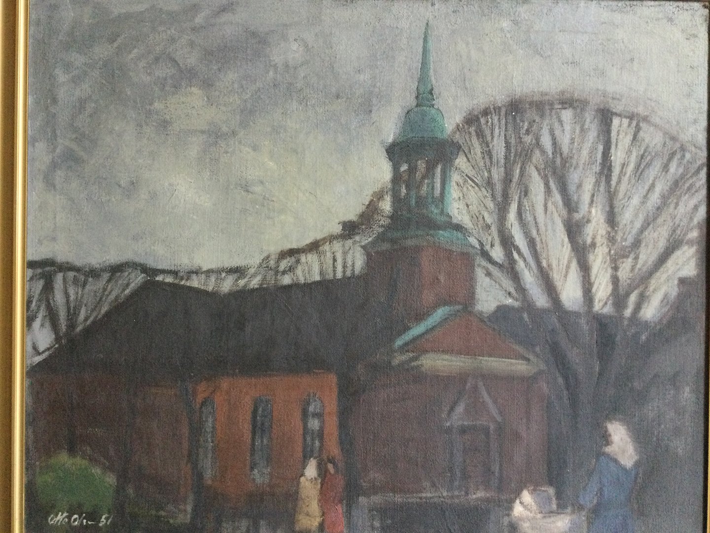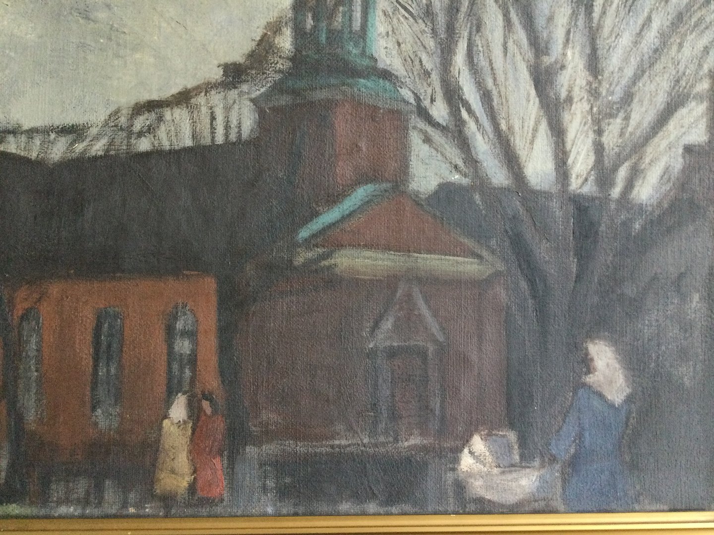 Maleri af Otto Olsen 1951 - Parti fra Sankt Annæ Plads med Garnisonskirken.