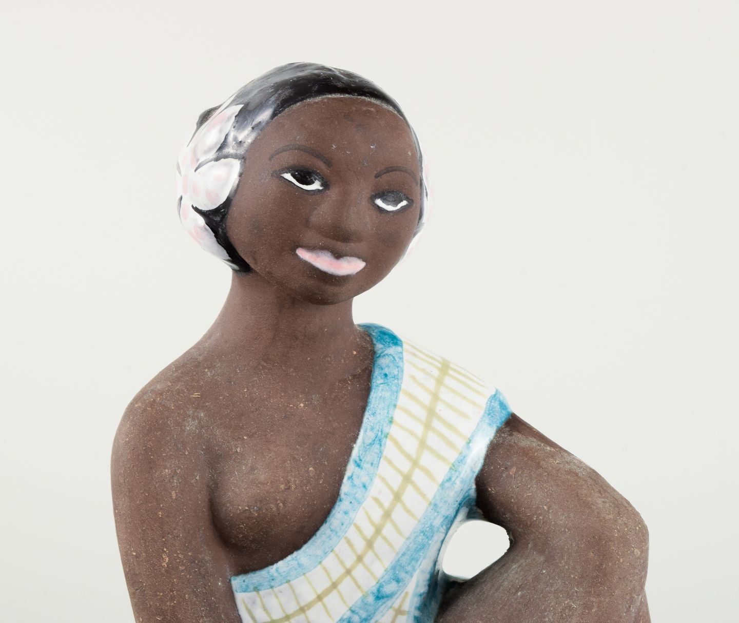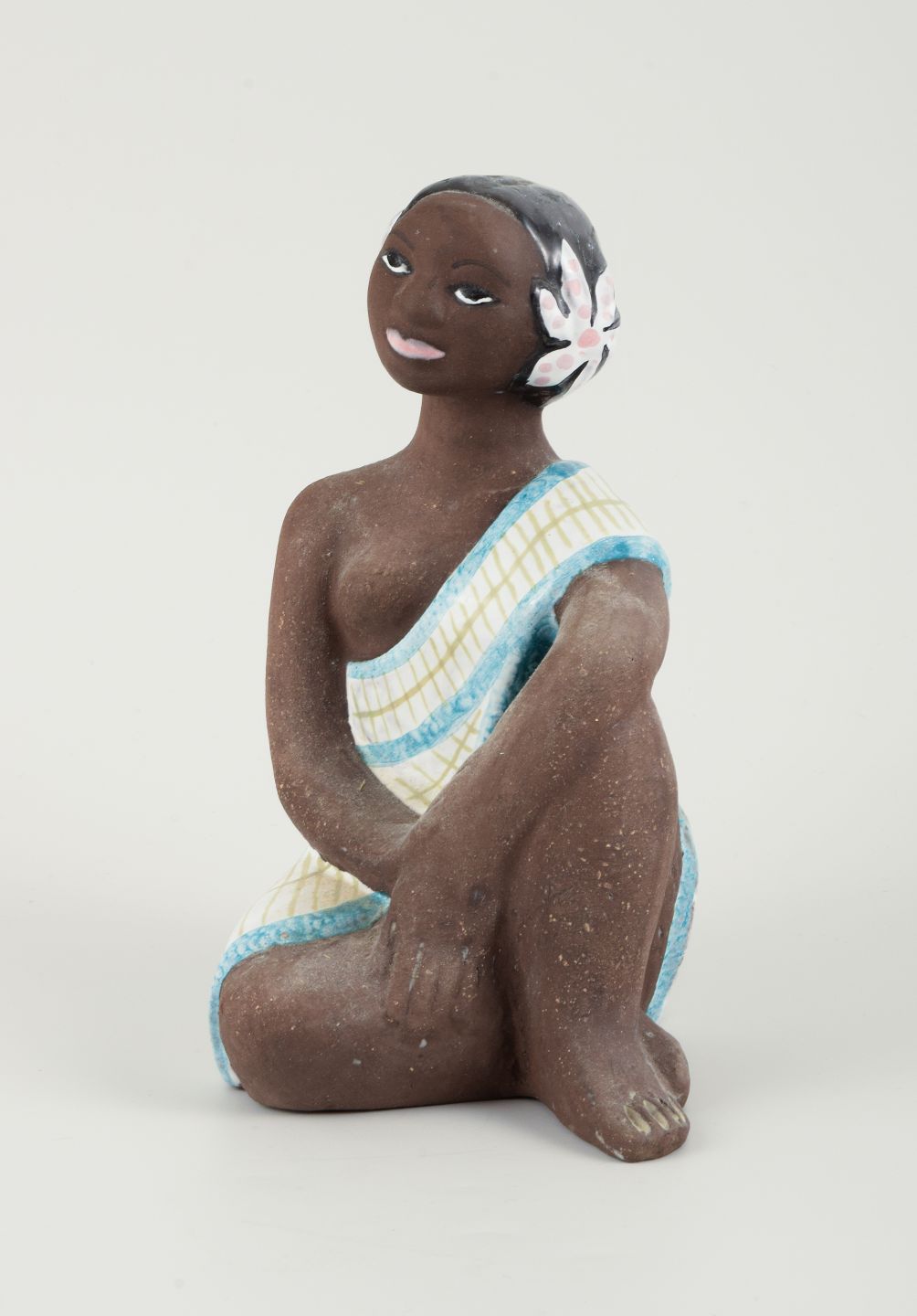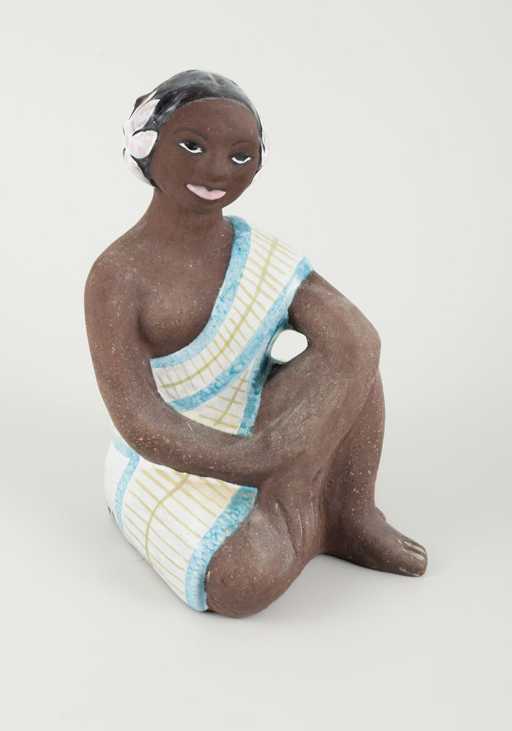 Sjælden keramikfigur af halvnøgen Tahiti-kvinde. Upsala-Ekeby.