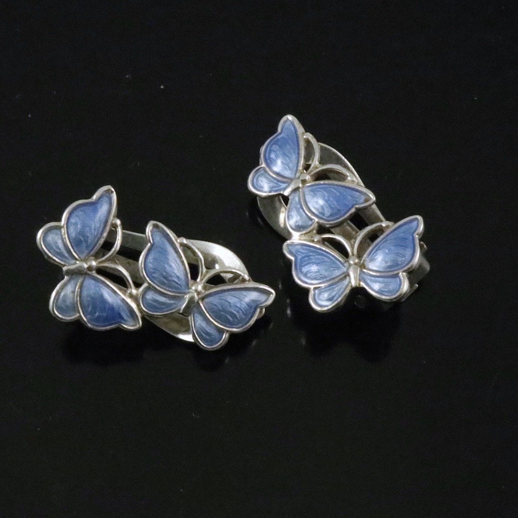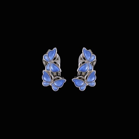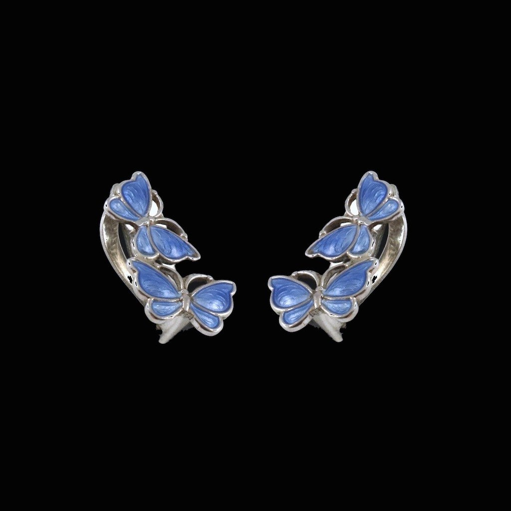 Volmer Bahner. Sterling Silver 'Butterfly' Ear Clips with blue enamel.