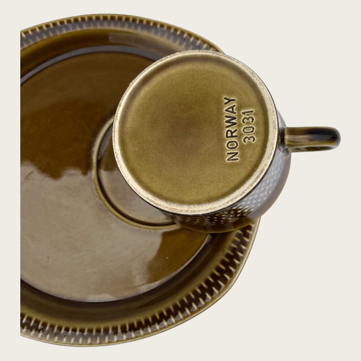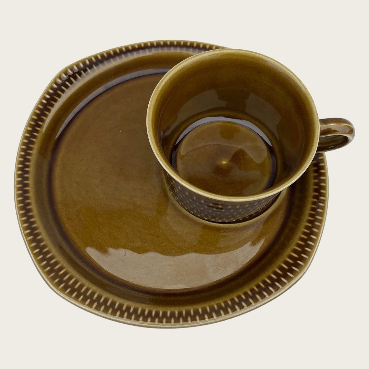 Stavanger flint, Brunette, TV cup, plate 20.5cm / 20.5cm, cup 6.5cm high, Design Kåre B. Fjeldsaas *Nice condition, a little rough on the bottom edge of the cup*