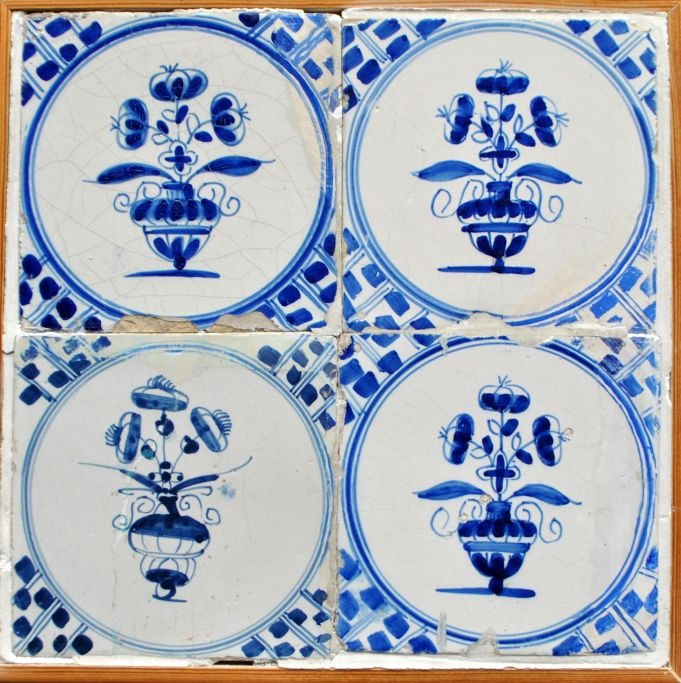 Flise firpas, blådekorerede fliser med blumenpot, 18. årh. Holland.
