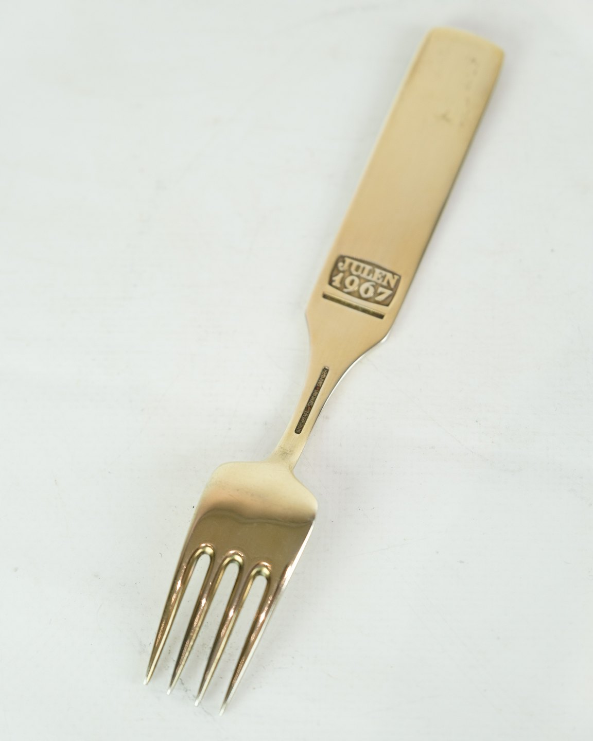 Juleske og gaffel, Anton Michelsen, forgyldt sterlingsølv, Paul Rene Gaugain, Juleglansen, 1967