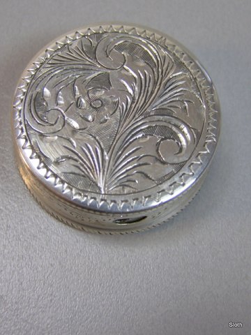 Sølvæske til Sødetabletter H: 1,2 cm. D: 3,5 cm.