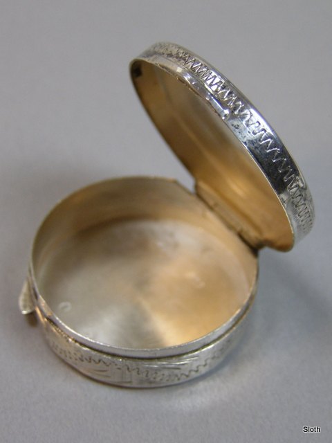 Pilleæske i sølv H: 1,2 cm. D: 3,5 cm.