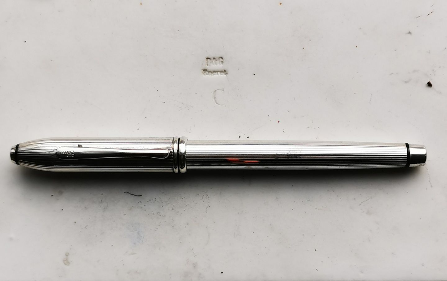 Cross Townsend sterling sølv fyldepen. i god stand uden skader eller reparationer. Flot overflade. Ingen stød eller ridser. Sølvstemplet. Guldspids i 18 karat guld. L. 15.cm.