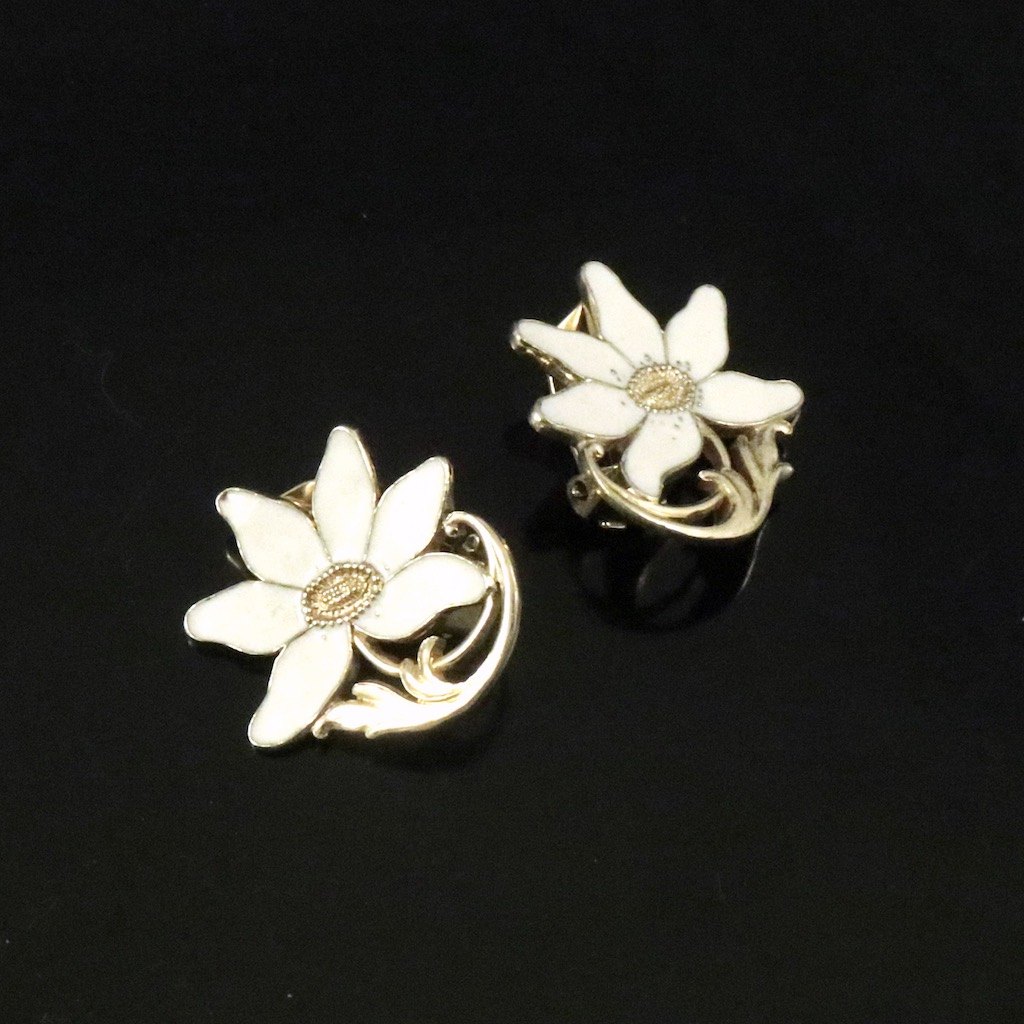 A. Dragsted - Copenhagen. Gold plated Sterling Silver Ear Clips with enamel.