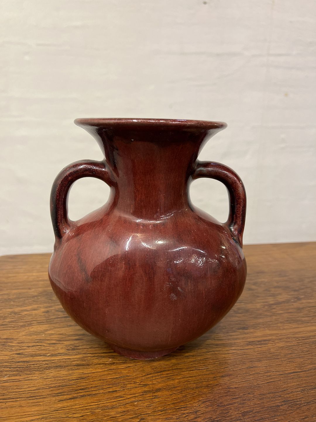 Bode Willumsen vase i stentøj glaseret med okseblods glasur. Udført hos Den Kgl. Porcelænsfabrik ca. 1930'erne. Pæn stand. Sign. med monogam.