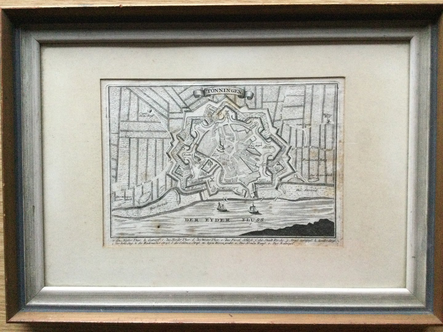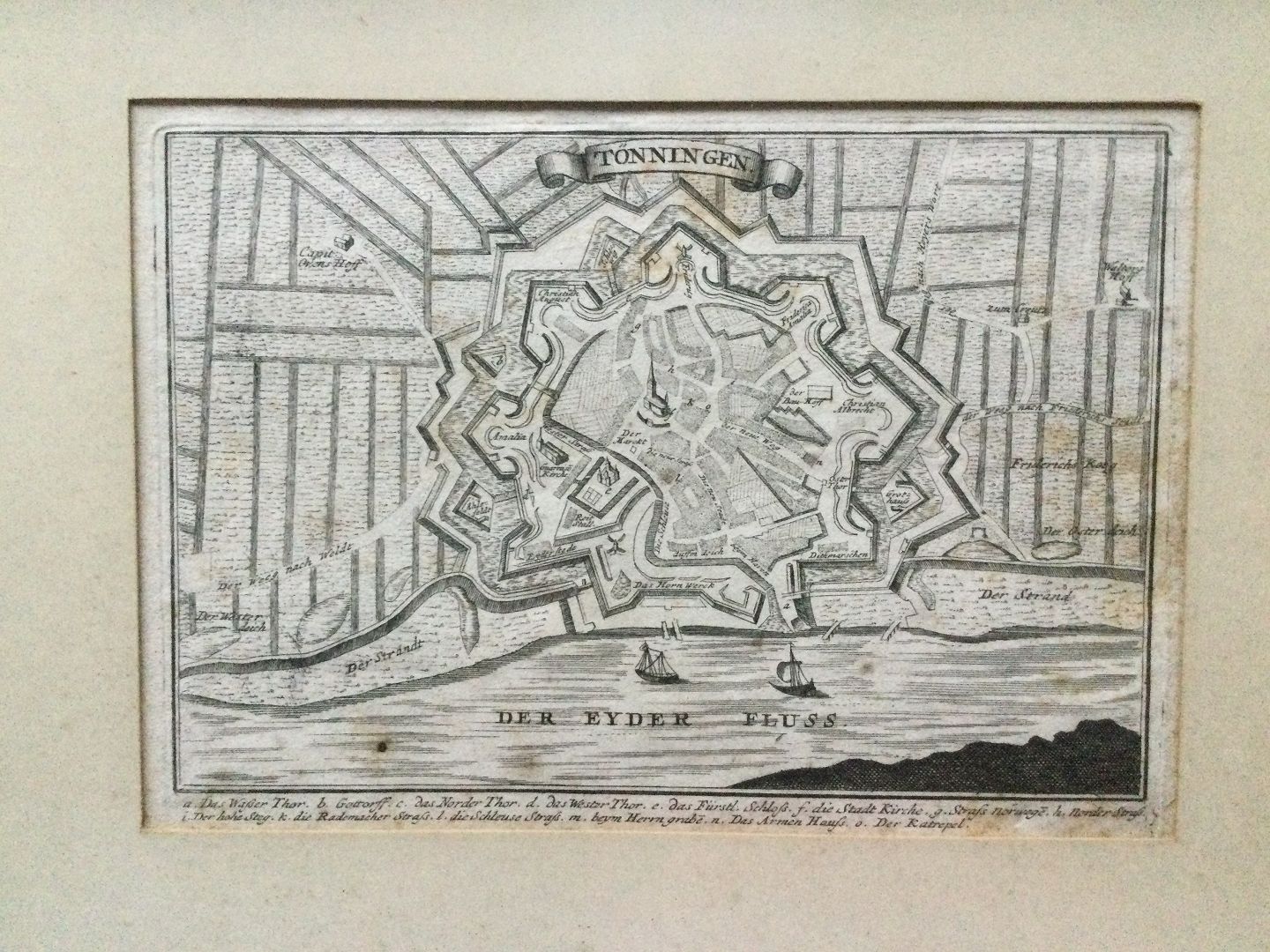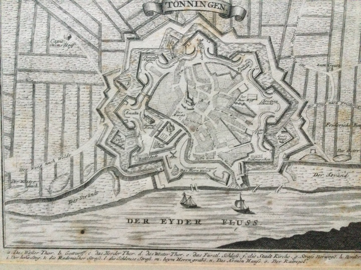Text available in Danish: Militært Kort over Tønning i Sydslesvig ca. 1700 af Gabriel Bodenehr.