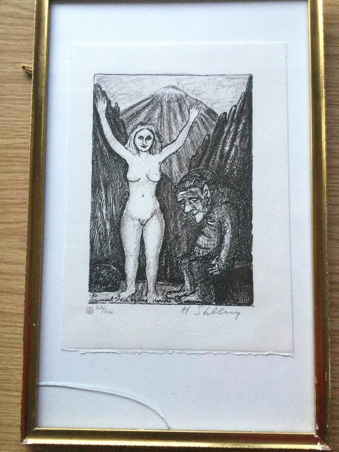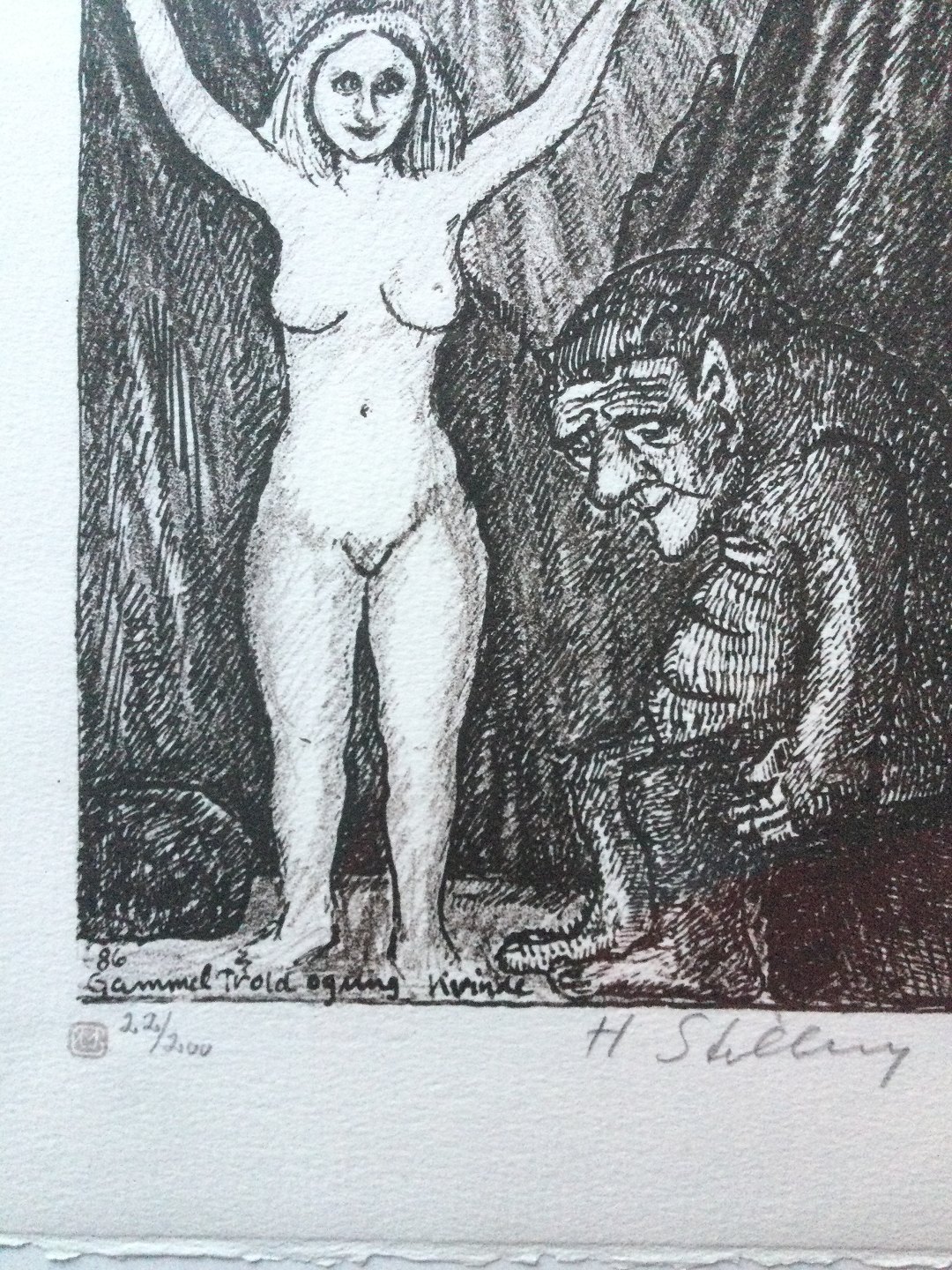 Radering af Herman Stilling - Ung kvinde og Trold 1986.