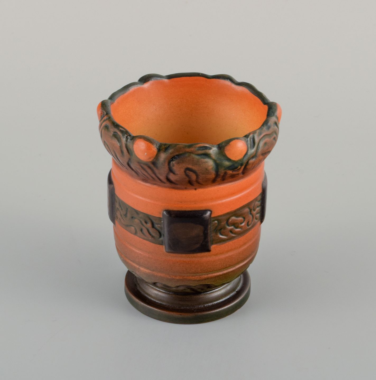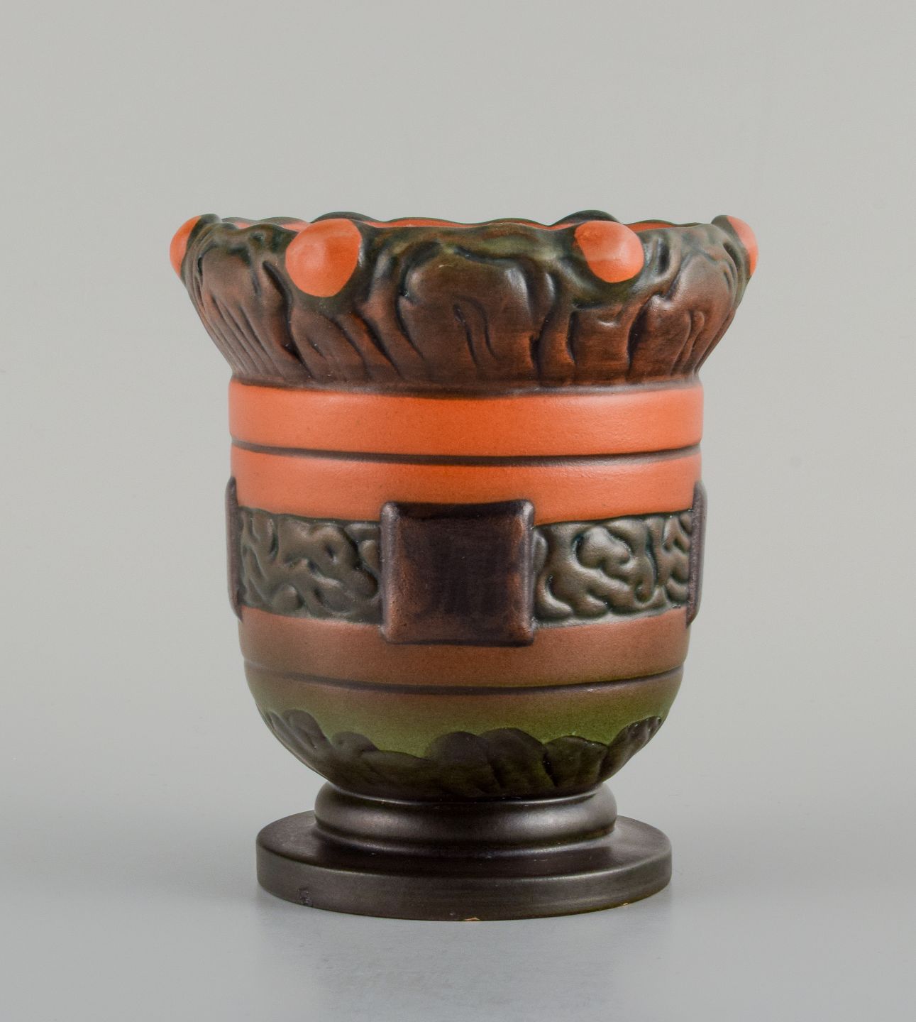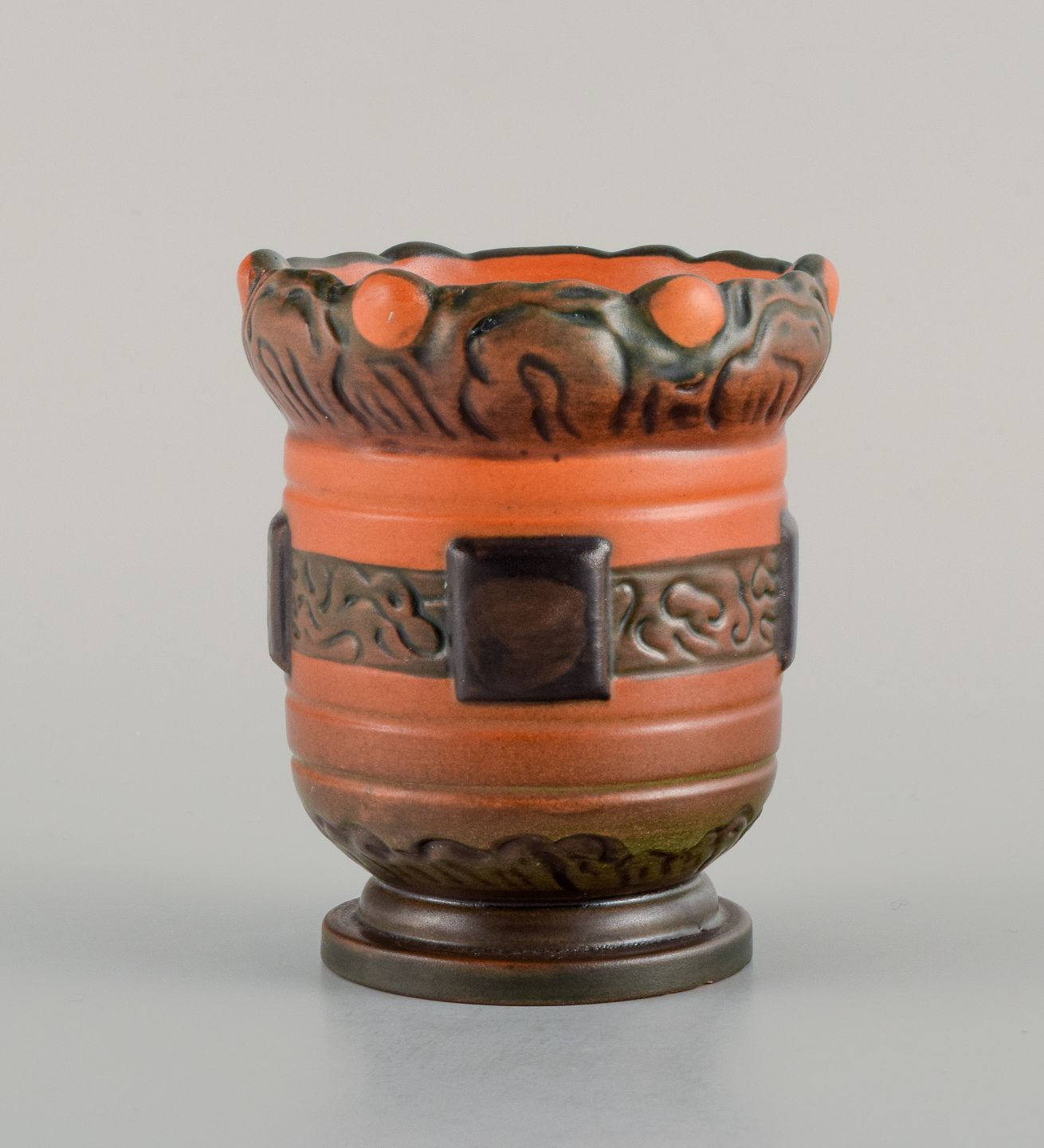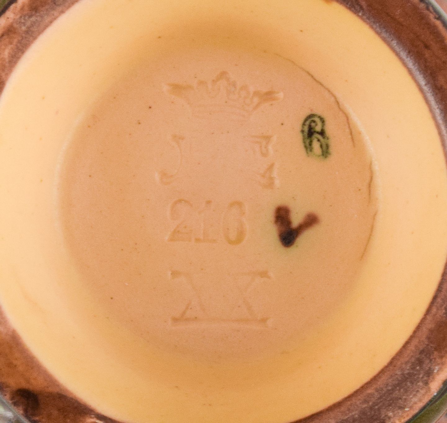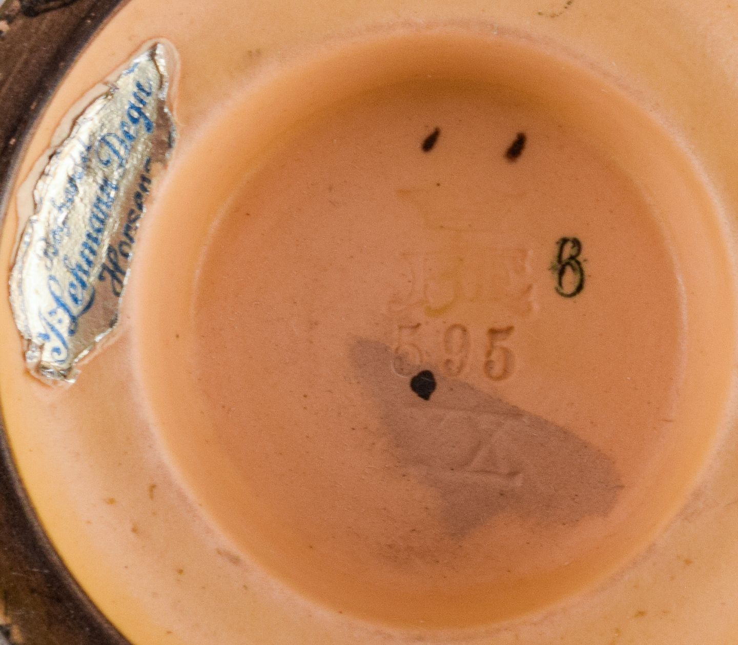 Ipsens enke. To art nouveau krukker i håndmalet glaseret keramik.