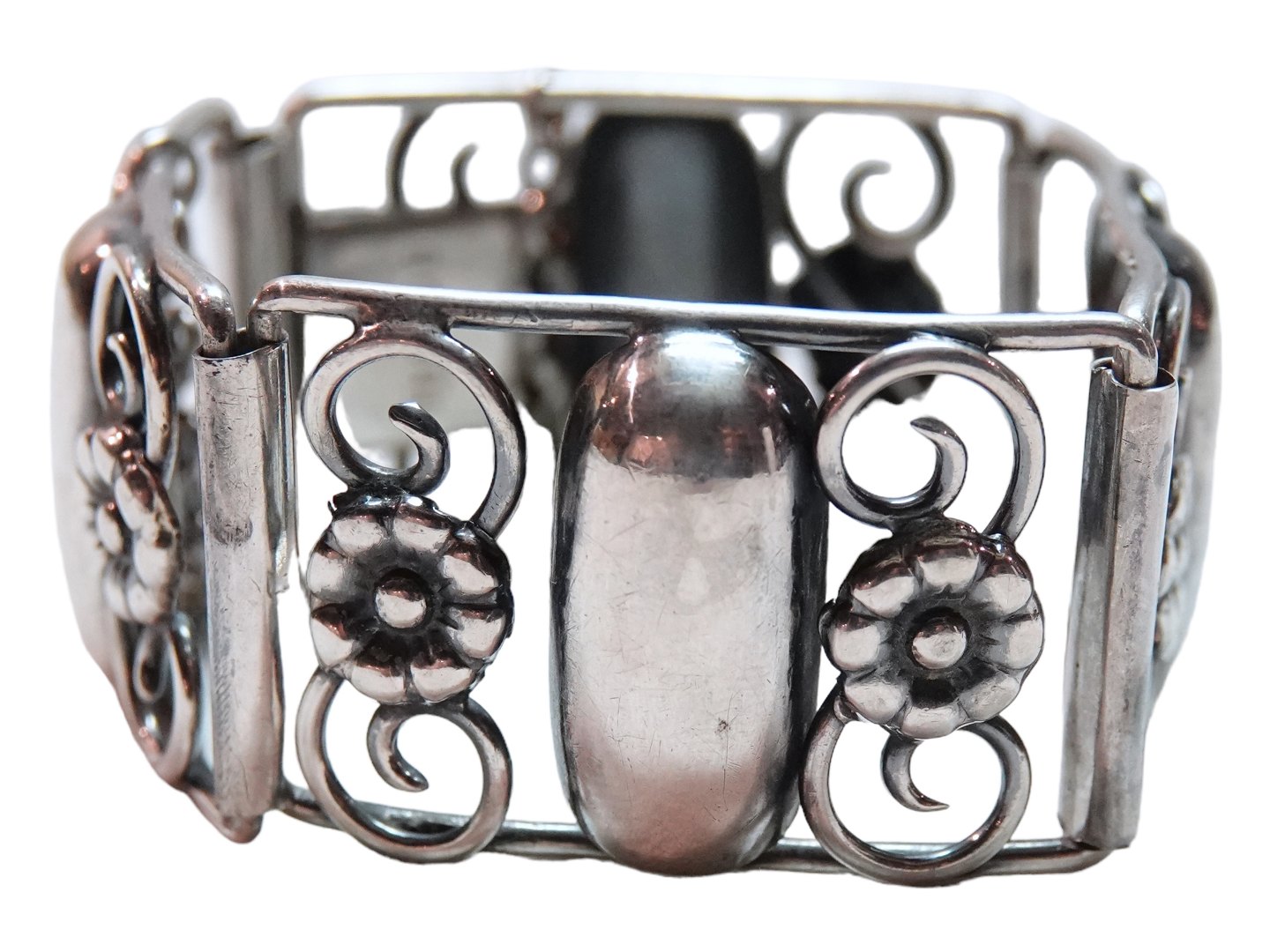 F. Hansen sølv, bredt armbånd med flotte store led.