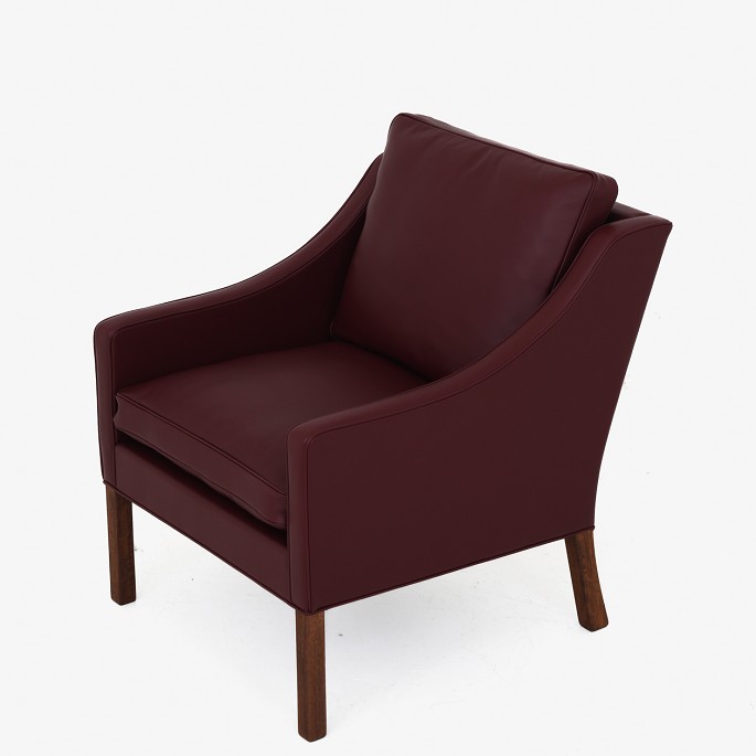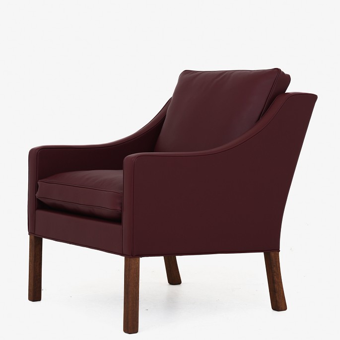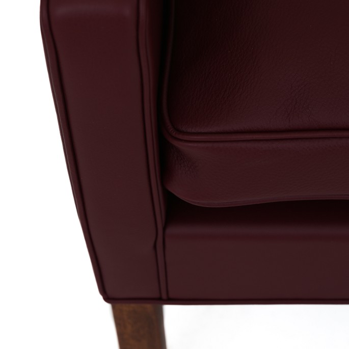BM 2207 - Nybetrukket lænestol i 'Prestige'-semi-anilin-læder (farve: Wine Red). KLASSIK tilbyder stolen i tekstil eller læder efter eget valg.