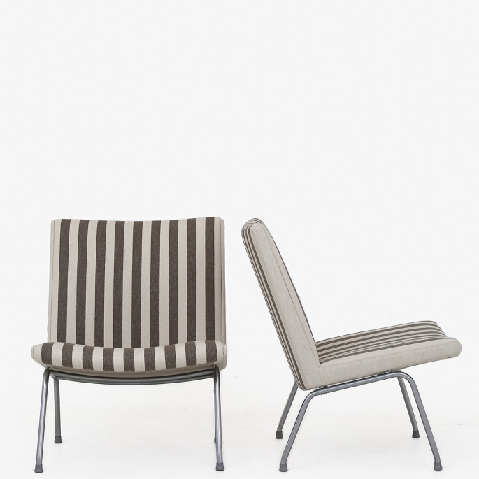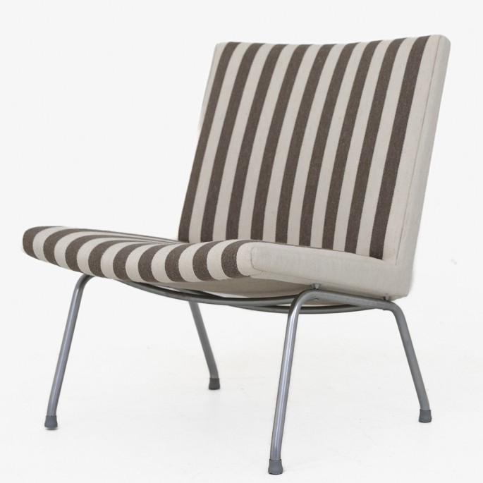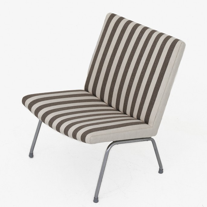 AP 39 - Lufthavnsstol, lænestol i nyt tekstil ('Halk' fra Kjellerup Væveri, farve: 02-260) på stel af stål.
