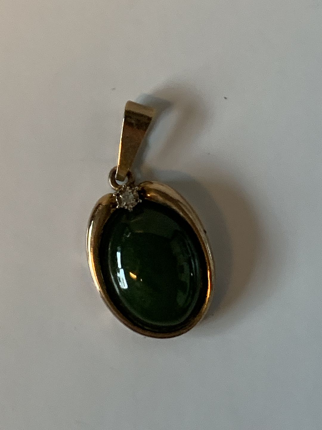 Vedhæng/Charms i 14 karat guld med brilliant og jade