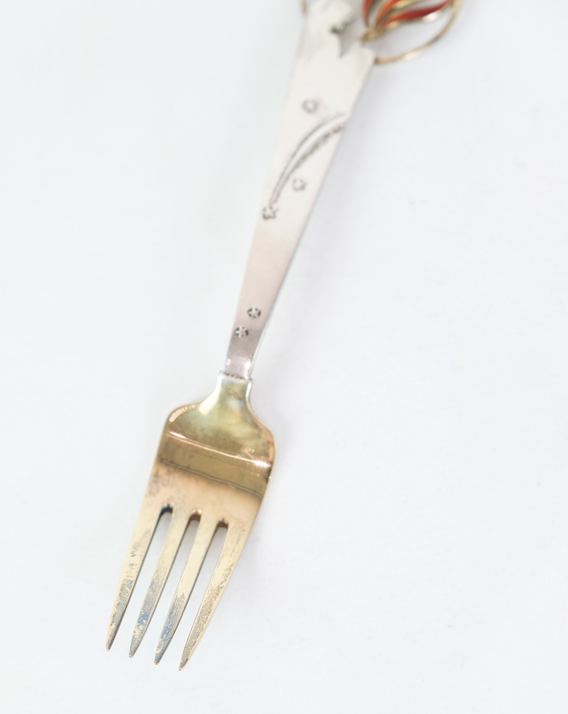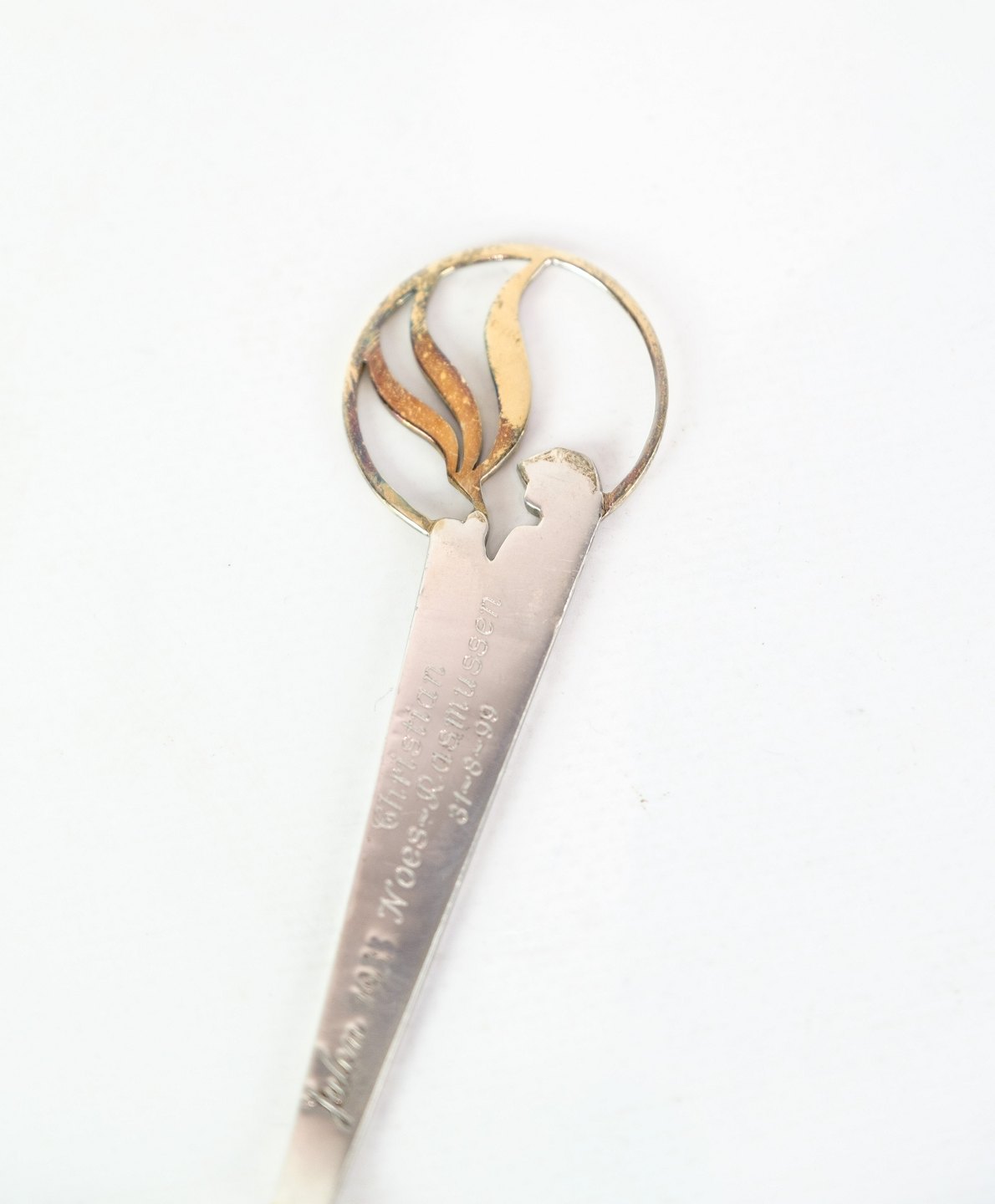 Anton Michelsen Juleske fra 1933 i delvis forgyldt sterling sølv er et smukt og eksklusivt stykke sølvtøj, der vil være en værdifuld tilføjelse til din julebordssamling. Skeen er lavet af høj kvalitet sterling sølv og er delvist forgyldt, som giver den en glansfuld finish. Motivet på skeen er den lille pige med svovlstikkerne, som er kunstnerisk fremstillet af c. Skeen er i pæn stand og har et elegante design med fine detaljer, der vil gøre denne juleske til en dekorativ og funktionel tilføjelse til din julefejring.