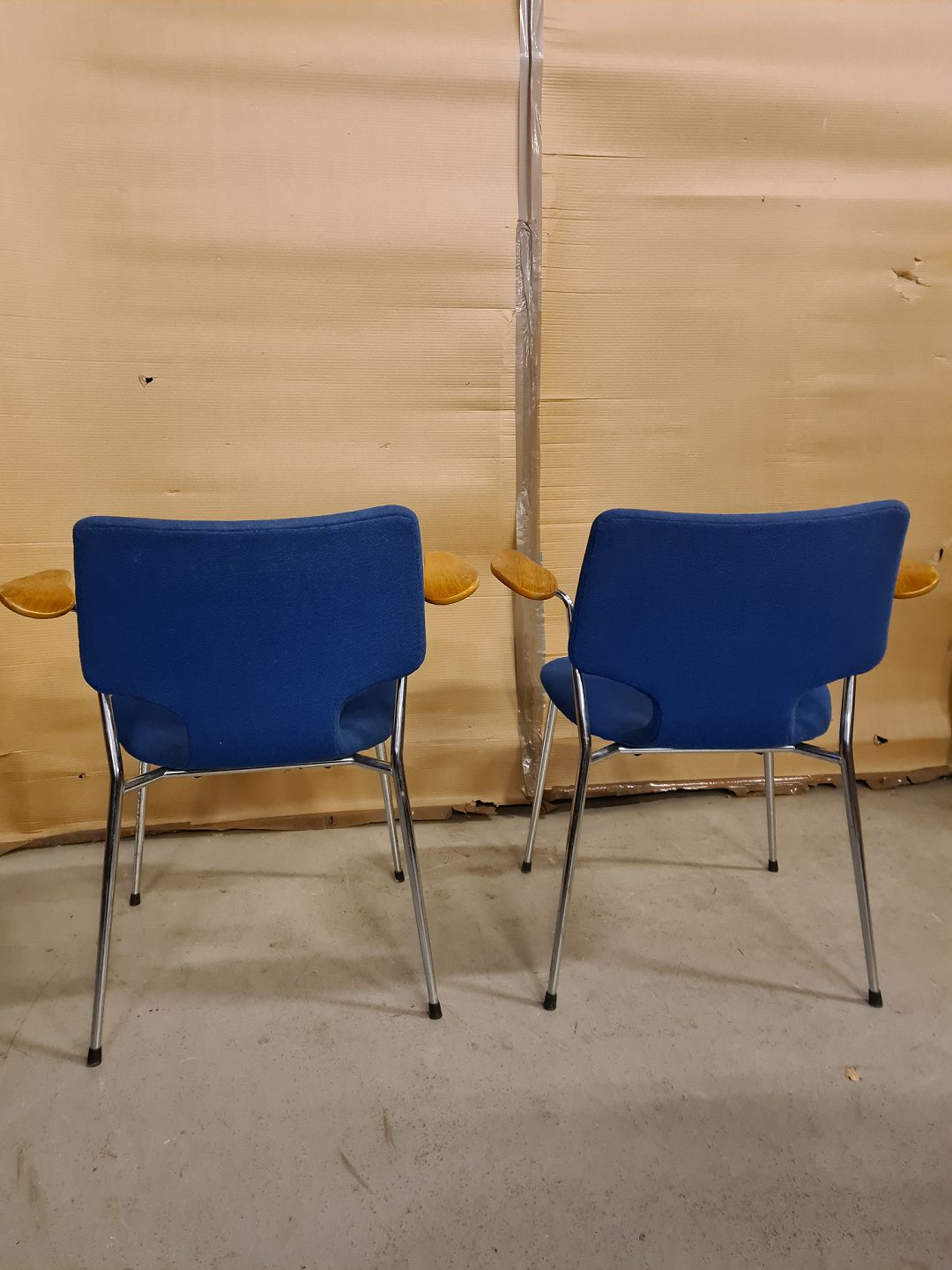8 Armstole i egetræ og metal, fra 1970erne.