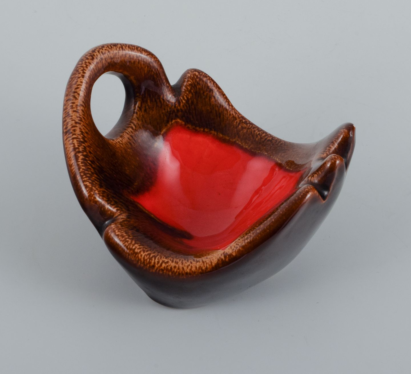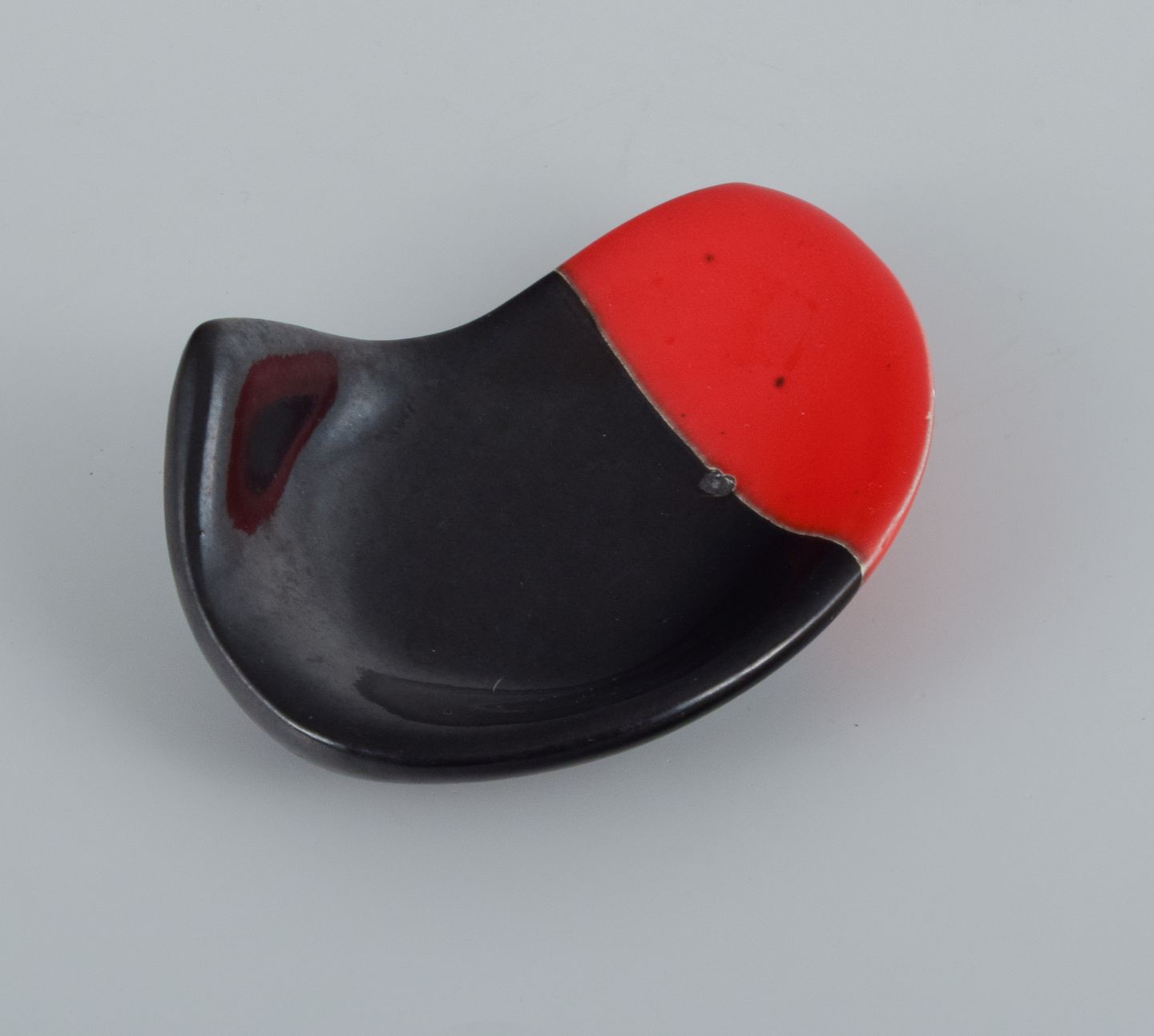 Vallauris, Frankrig, to keramikskåle med glasurer i rød/sort og og rød/brun.