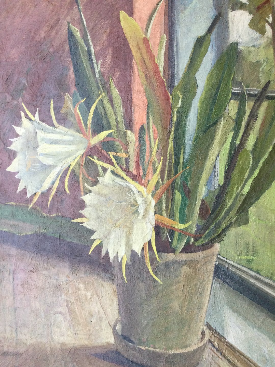 Opstilling med kaktus (Nattens Dronning) i vindueskarm 1928.