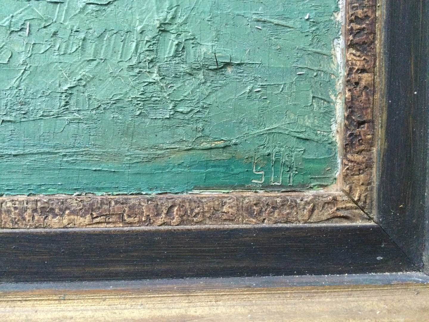 Maleri af Svend O. Frederiksen - landskab med køer ved Hårslev på Fyn.