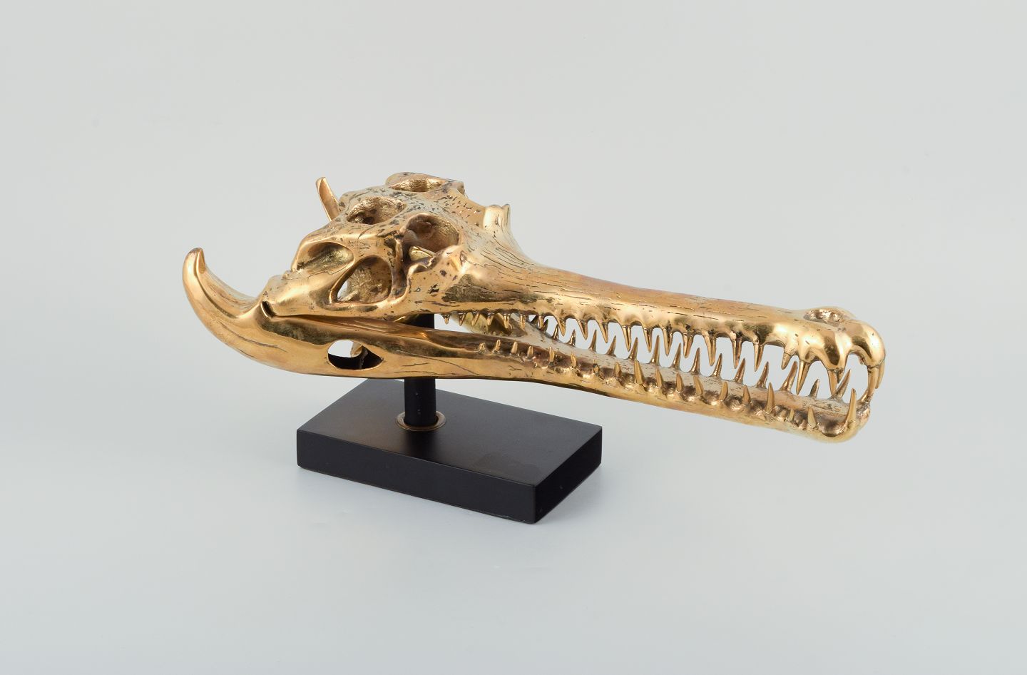 Unknown French sculptor. Large sculpture in gilded metal - modern design in the shape of a crocodile skull.