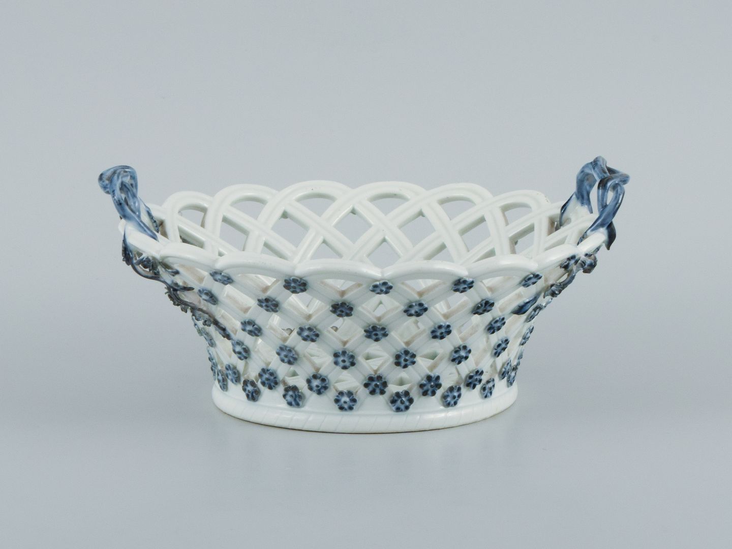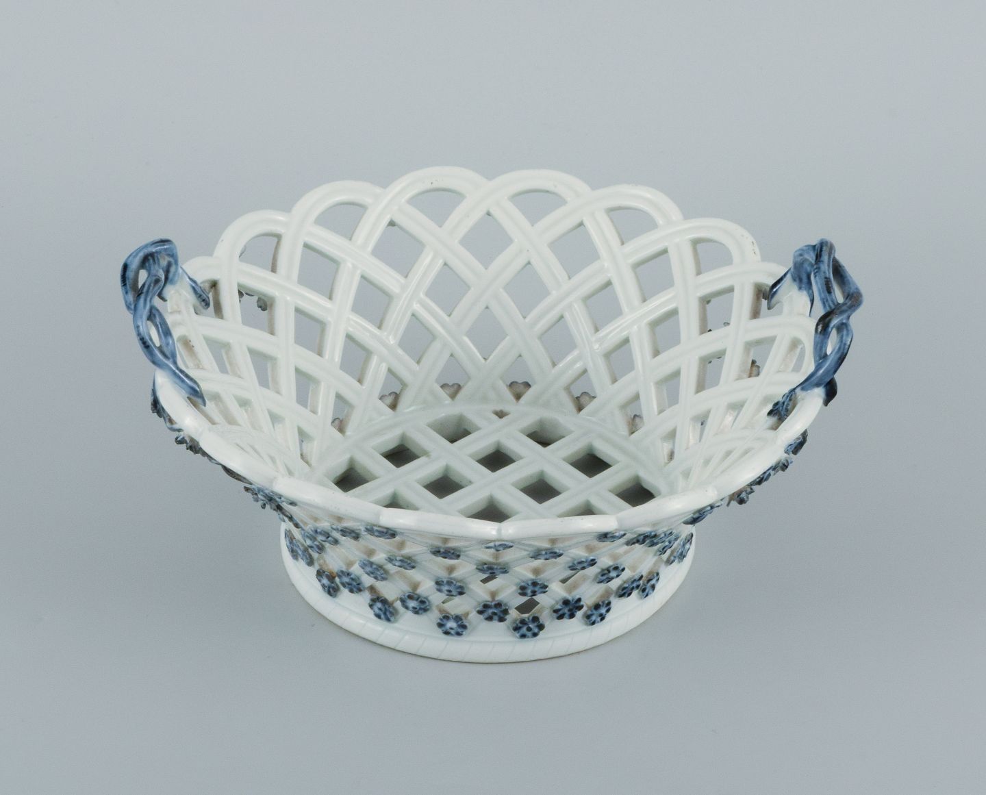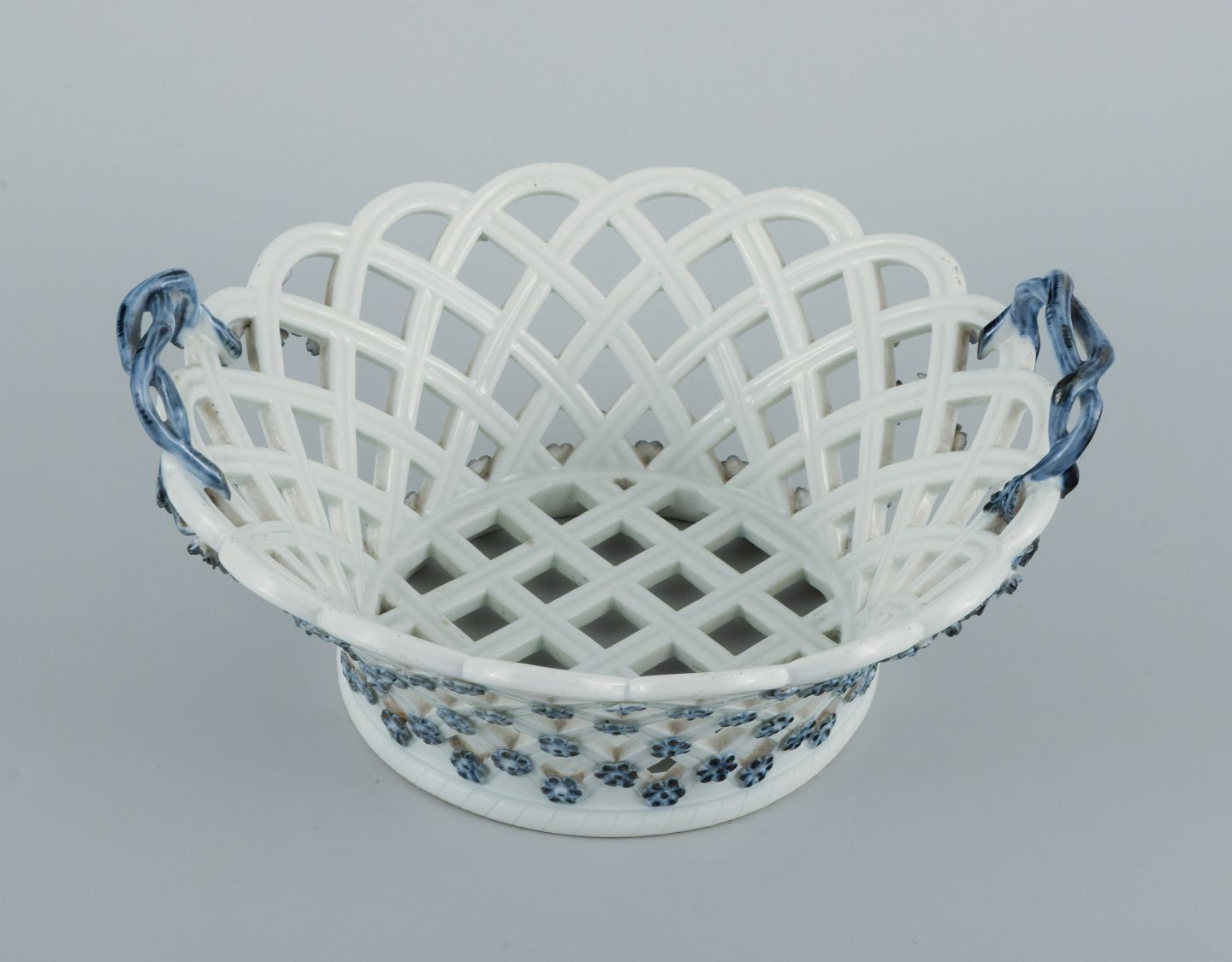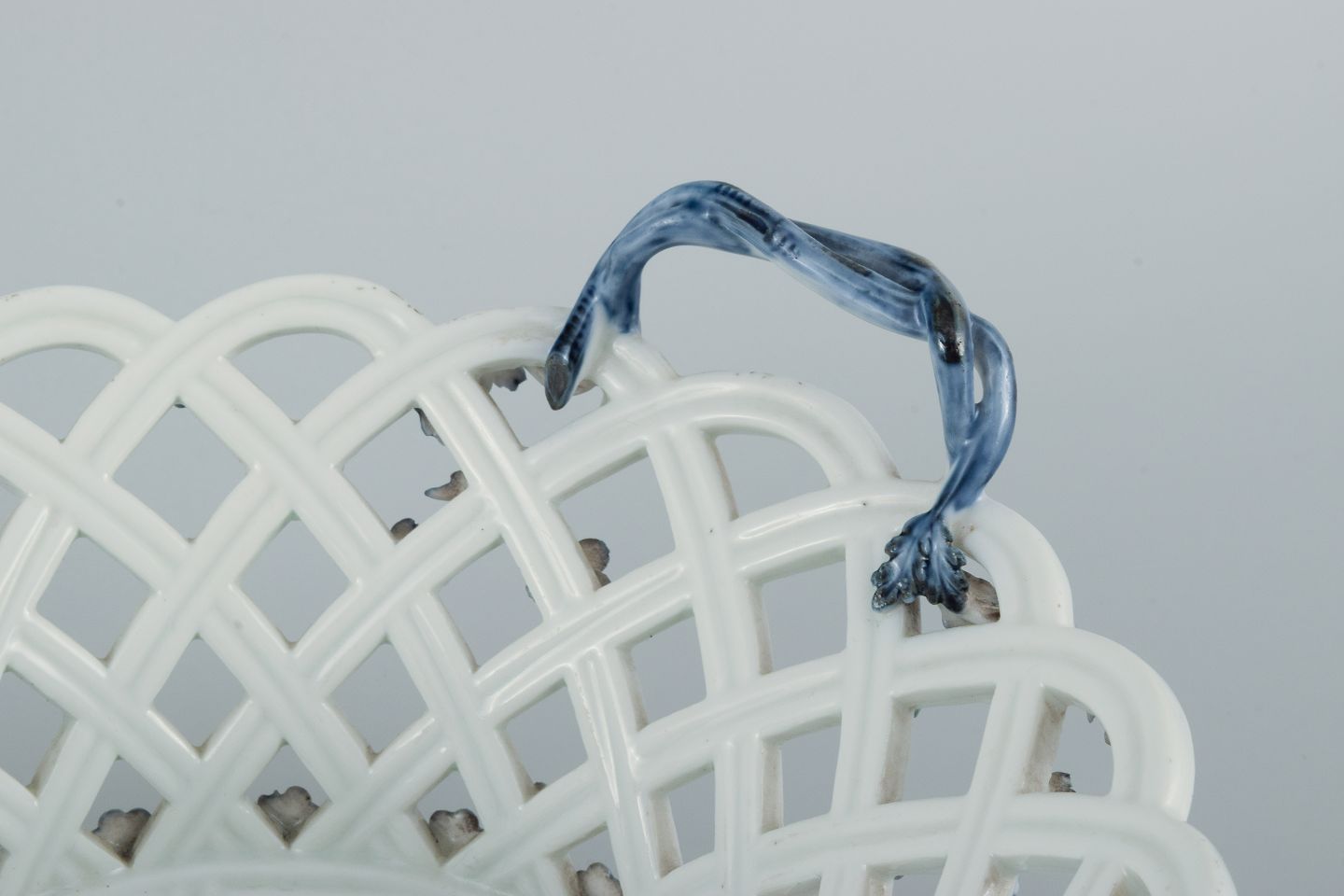 Meissen, Tyskland. Sjælden og tidligt Meissen skål med gennembrudt kant, hanke i form af grene og bladværk. Pousserende blomster i relief.