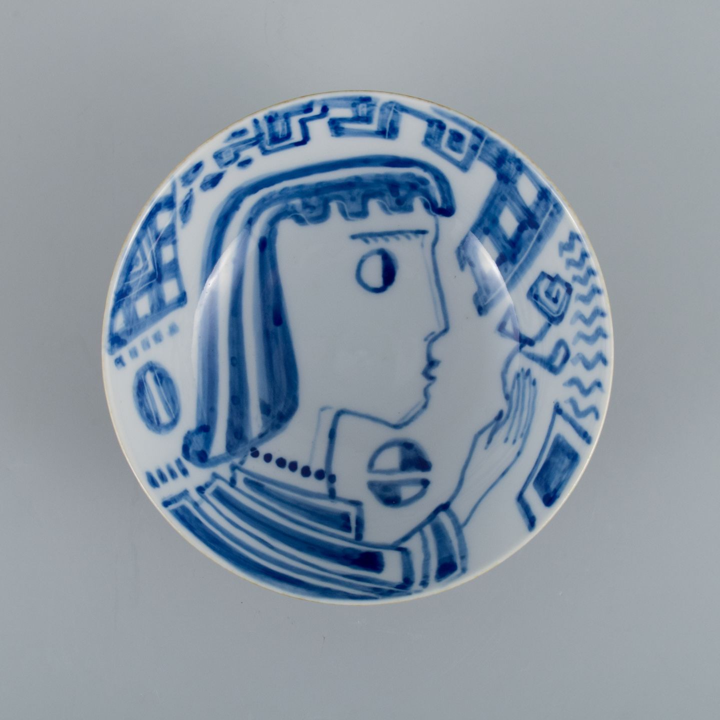 Gunnar Nylund for Rörstrand, Sverige, unika keramikskål håndmalet med kvinde i profil.