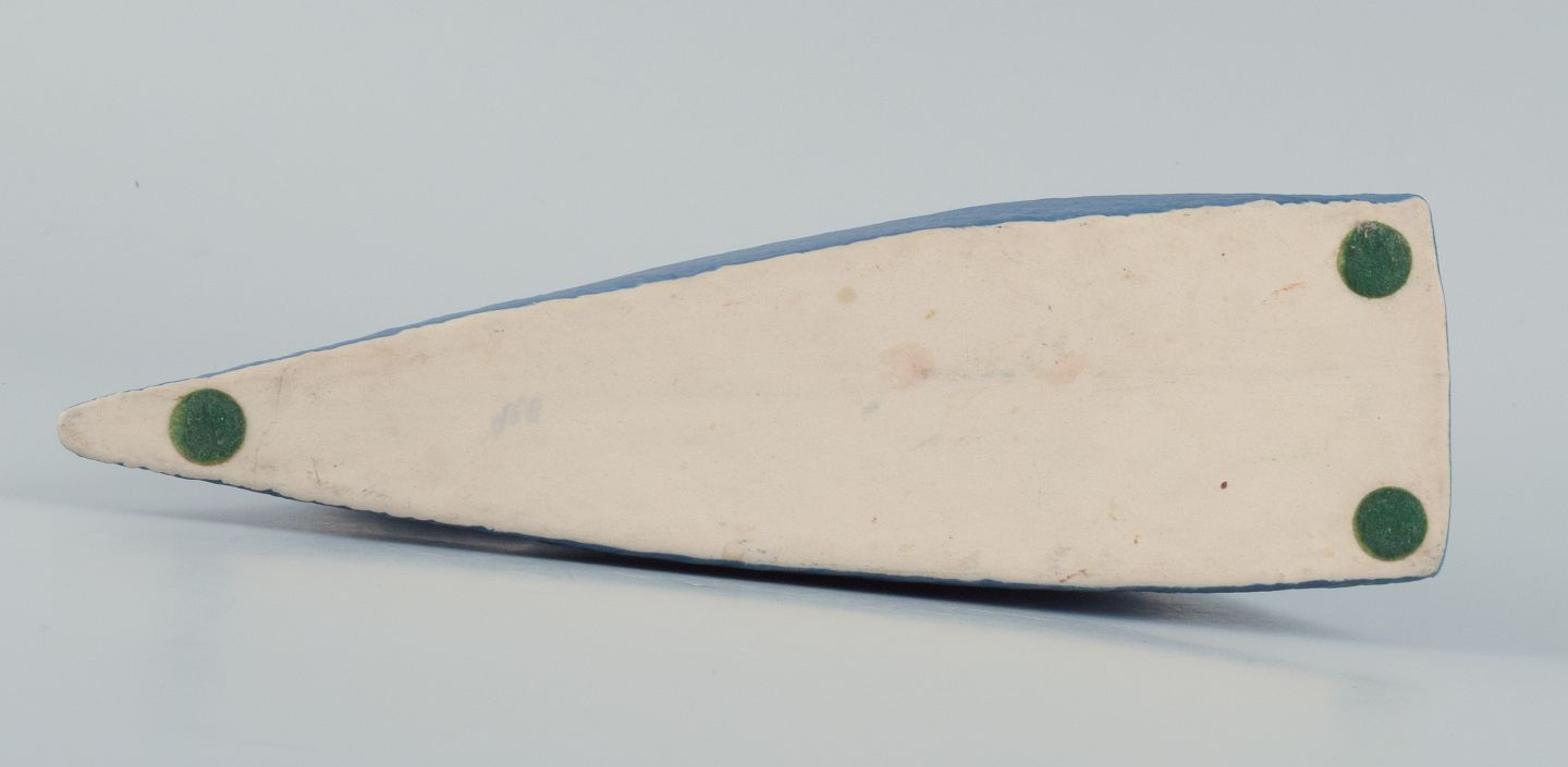Europæisk studiokeramiker. Trekantet vase i blå glasur.